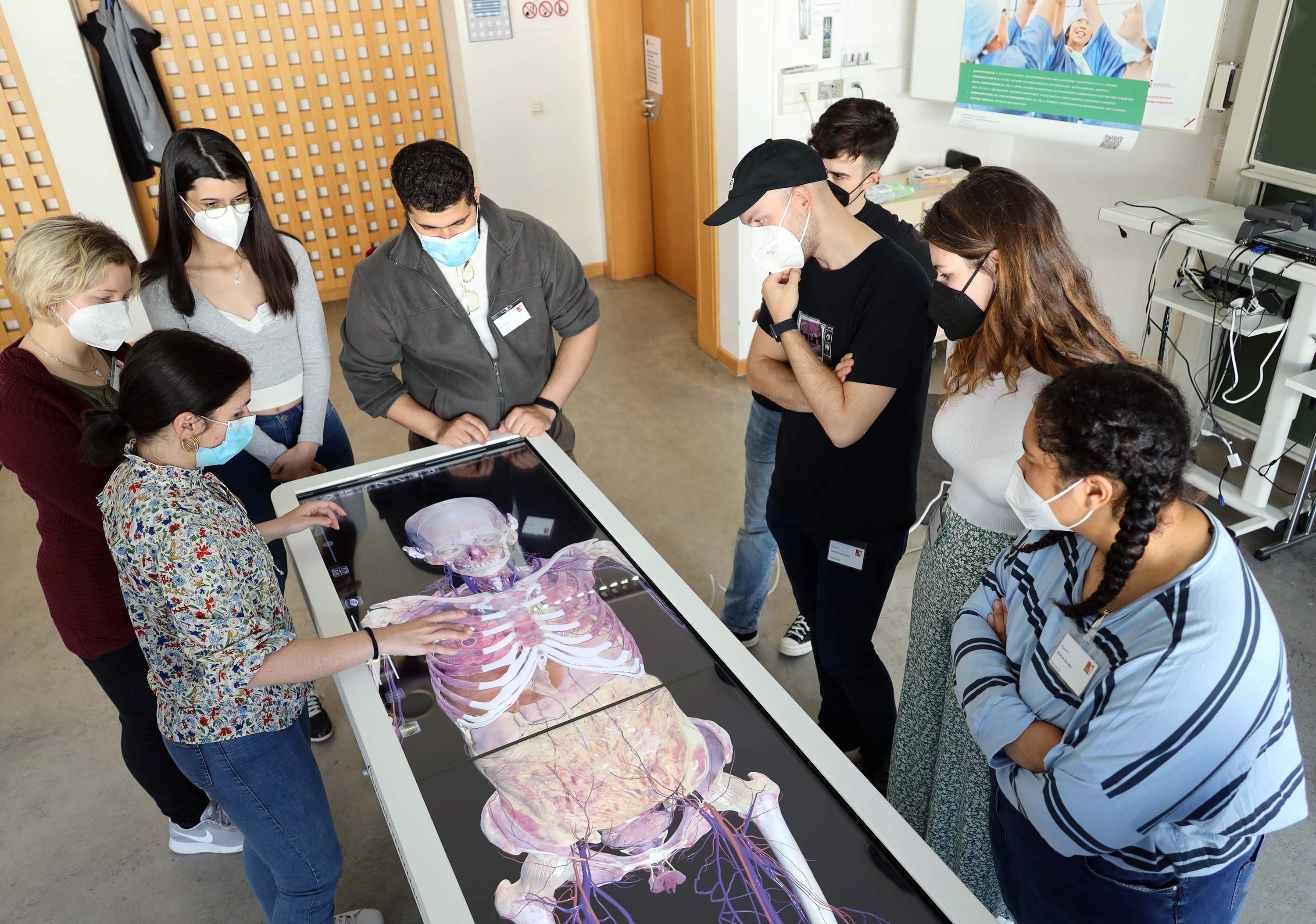 Zur Festigung der Grundlagen und zur Förderung eines besseren räumlichen Vorstellungsvermögens konnten die Studierenden zusätzlich an einem virtuellen Sezier-Tisch wichtige anatomische Strukturen nachvollziehen und sich physiologische und pathologische Vorgänge im Körper in 3D anschauen. Einen Einblick in technische Details der Sonografie konnten PA-Studierende im Workshop von Prof. Dr. Stefanie Remmele von der Fakultät ET/WI gewinnen. Gemeinsam mit Prof. Dr. Christopher Auer und ihren Arbeitsgruppen nutzte Remmele außerdem die Gelegenheit, sich mit den Mediziner*innen über den Bereich Augmented Reality wissenschaftlich auszutauschen.
