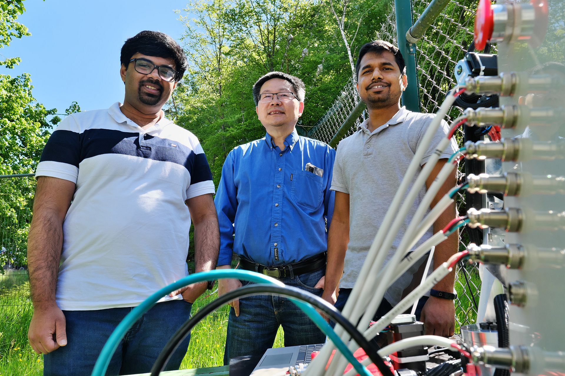Die Wissenschaftler demonstrieren dies am Beispiel eines Zaunes, der mit einem Sensorkabel verbunden ist. Der Zaun ist ein alter Bekannter. Uwe Hartmann hat mit dem Ausstellungsstück schon häufig die Wirksamkeit verschiedener Sensoren vorgeführt. Neu ist dieses Jahr aber die Sensortechnik. „Wir haben im Sensorkabel, das im Zaun integriert ist, mehrere eigenständige Sensoren mit unserer intelligenten Programmierung auf einer einfachen Hardware miteinander vernetzt, so dass sie den Zaun an jeder Stelle überwachen können“, erklärt Magnetismus-Experte Hartmann. Ein einfacher Roboter, der simulieren kann, ob jemand über den Zaun klettert oder an ihm rüttelt, kommt dabei zum Einsatz, um die Versuche reproduzierbar und nachvollziehbar zu machen. „Am Ende konnten die vernetzten Sensoren mit 87,5 Prozent Wahrscheinlichkeit korrekt auseinanderhalten, ob ‚jemand‘, also der Roboter, am Zaun rüttelt oder ihn zu überklettern versucht“, erläutert Uwe Hartmann. Die Sensoren haben mit der Zeit gelernt, die Bewegungsmuster, die der Roboter verursacht, auseinanderzuhalten.
