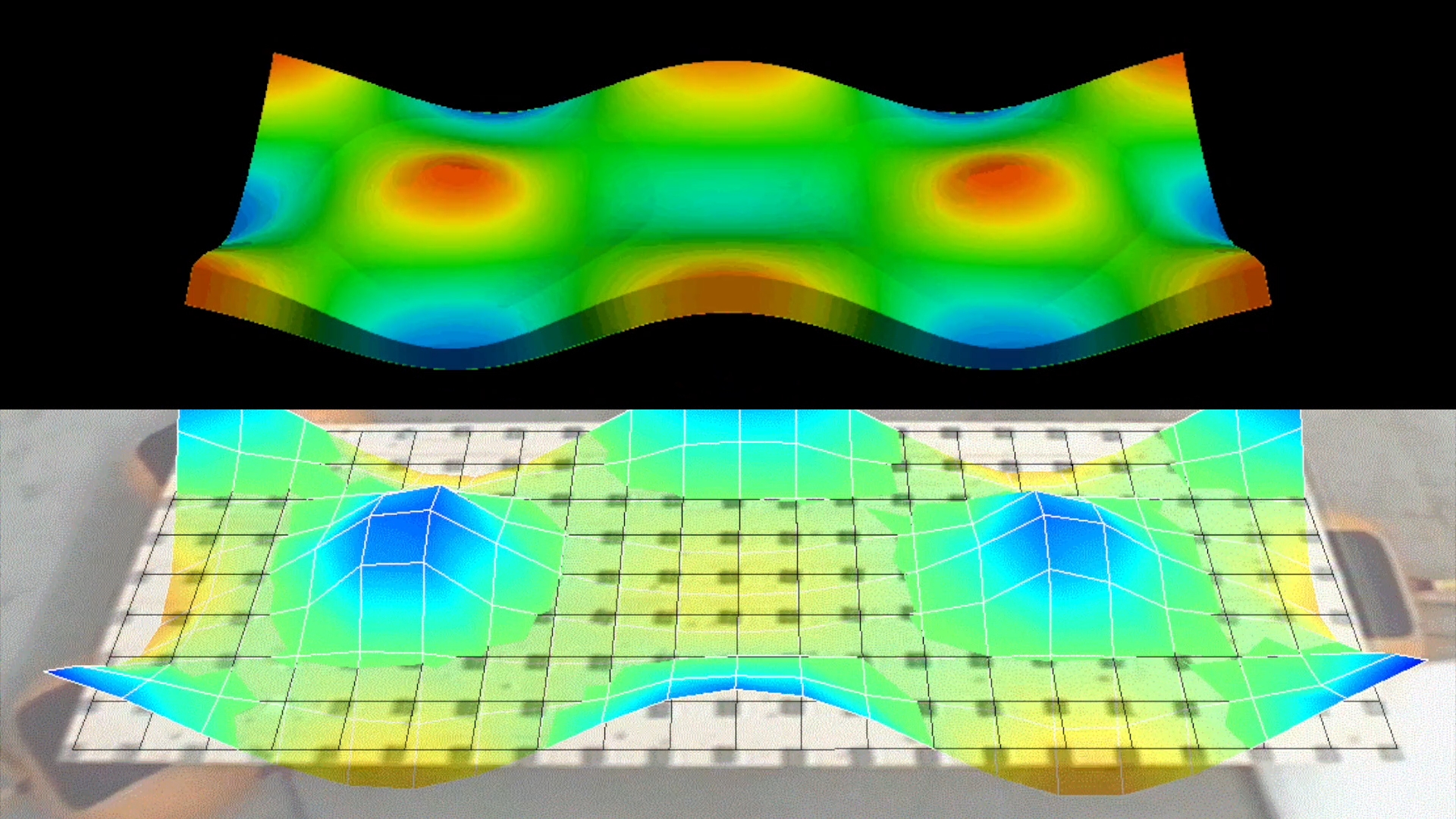 Noch vor zehn Jahren wäre eine solche Versuchsreihe nicht durchführbar gewesen. Schon die Modellierung der Vibration eines kleinen Bandbreitebereichs war vom rechnerischen Aufwand her eine Dissertation. Heute rechnen Schoenwald und Vallely an einem Nachmittag das ganze akustische Spektrum durch und machen die Vibrationen als Visualisierung gleich sichtbar. Ziel des Versuchs ist es, zu untersuchen, ob die simulierten Resultate sich mit den gemessenen Werten decken. Denn wenn das Computermodell der Realität entspricht, können am Computer nahezu kostenlos alle möglichen Parameter verändert werden, ohne dass jedes Mal eine neue Versuchsplatte angefertigt werden muss. So lässt sich die Schallminderung ohne aufwändige Experimente für Holzelemente aller möglichen Grössen und Geometrien optimieren.