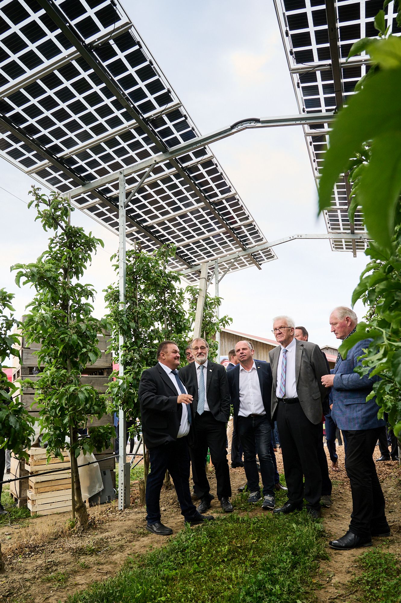 »In der Agri-Photovoltaik liegt eine Riesenchance für die Landwirtschaft, für die Nachhaltigkeit und für die Energieversorgung. Mit der Modellregion Agri-Photovoltaik Baden-Württemberg wollen wir zeigen, wie doppelt ernten geht – hier zum Beispiel Sonnenenergie und Äpfel. Dafür stellen wir in den nächsten drei Jahren insgesamt knapp 2,5 Millionen Euro zur Verfügung. Die heutige Eröffnung der Anlage in Kressbronn markiert einen Meilenstein. Ich bin dankbar für die Pionierarbeit und wünsche allen Beteiligten gutes Gelingen«, sagte Ministerpräsident Kretschmann in seiner Eröffnungsrede. Die Agri-PV-Anlage in Kressbronn ist eine von insgesamt fünf Forschungs- und Demonstrationsanlagen mit einer Gesamt-Nennleistung von bis zu 1.700 Kilowatt. Sie werden in Bavendorf, Heuchlingen, Karlsruhe, Kressbronn und Oberkirch-Nußbach errichtet.