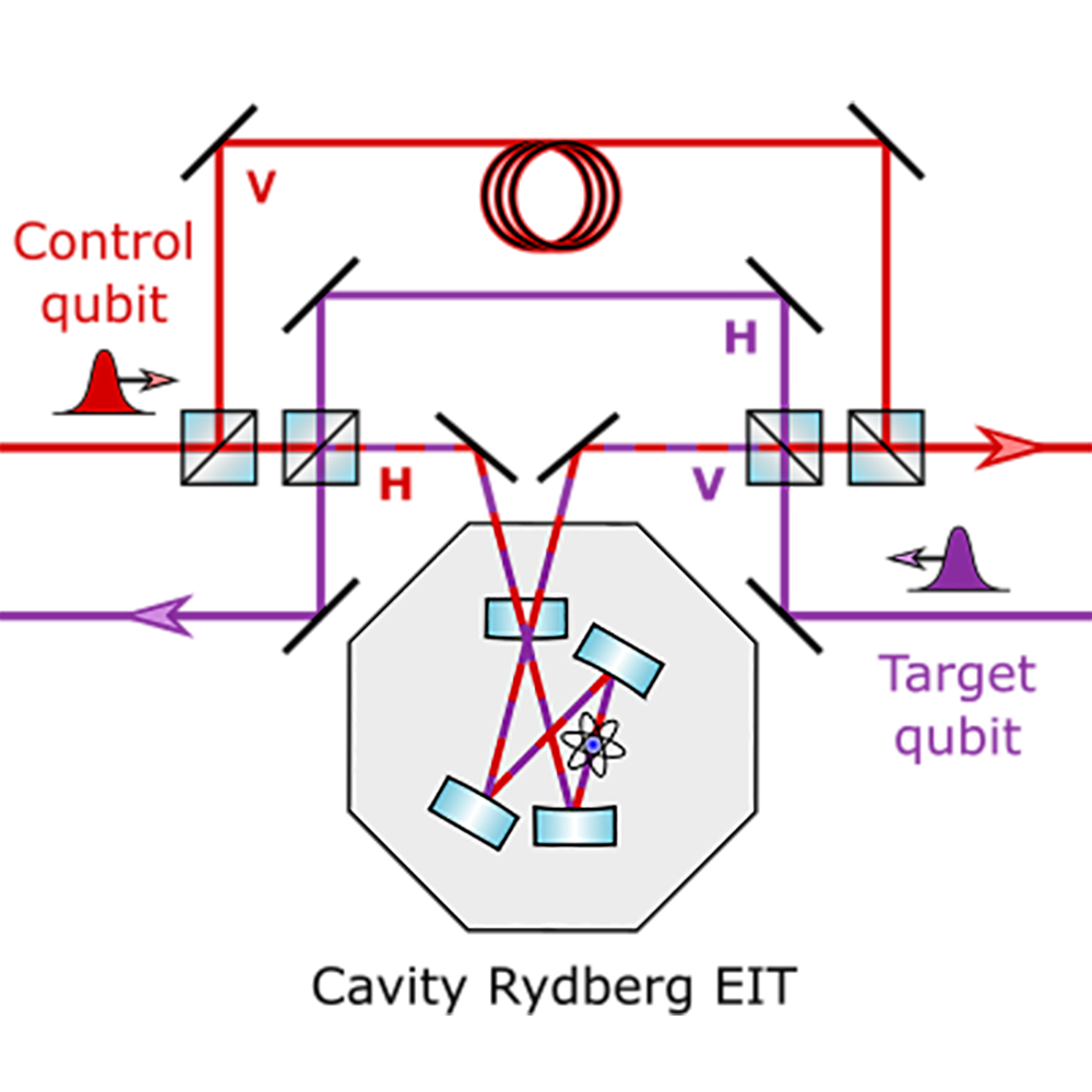This led to the success of the experiment, in which the quantum gate processed the optical qubits in two steps: A first photon, called control photon, was introduced into the resonator and stored there. Then, a second photon, called target photon, entered the setup and was reflected from the resonator mirrors - "the moment when the interaction took place", emphasises Stolz. Finally, both photons left the quantum gate - together with the information imprinted on them. In order for this to work, the physicists used another trick. This is based on electron excitations of the gas atoms to very high-energy levels, called Rydberg states. "This causes the excited atom - in the classical picture - to expand immensely," explains Stolz. It reaches a radius of up to one micrometre - several thousand times the normal size of the atom. The atoms in the resonator that are inflated in this way then make it possible for the photons to have a sufficiently strong effect on each other. This, however, initially only causes a phase shift. In addition, the light is split into different paths that are later superimposed. Only the quantum mechanical interference during this superposition turns the phase shift into a quantum gate.