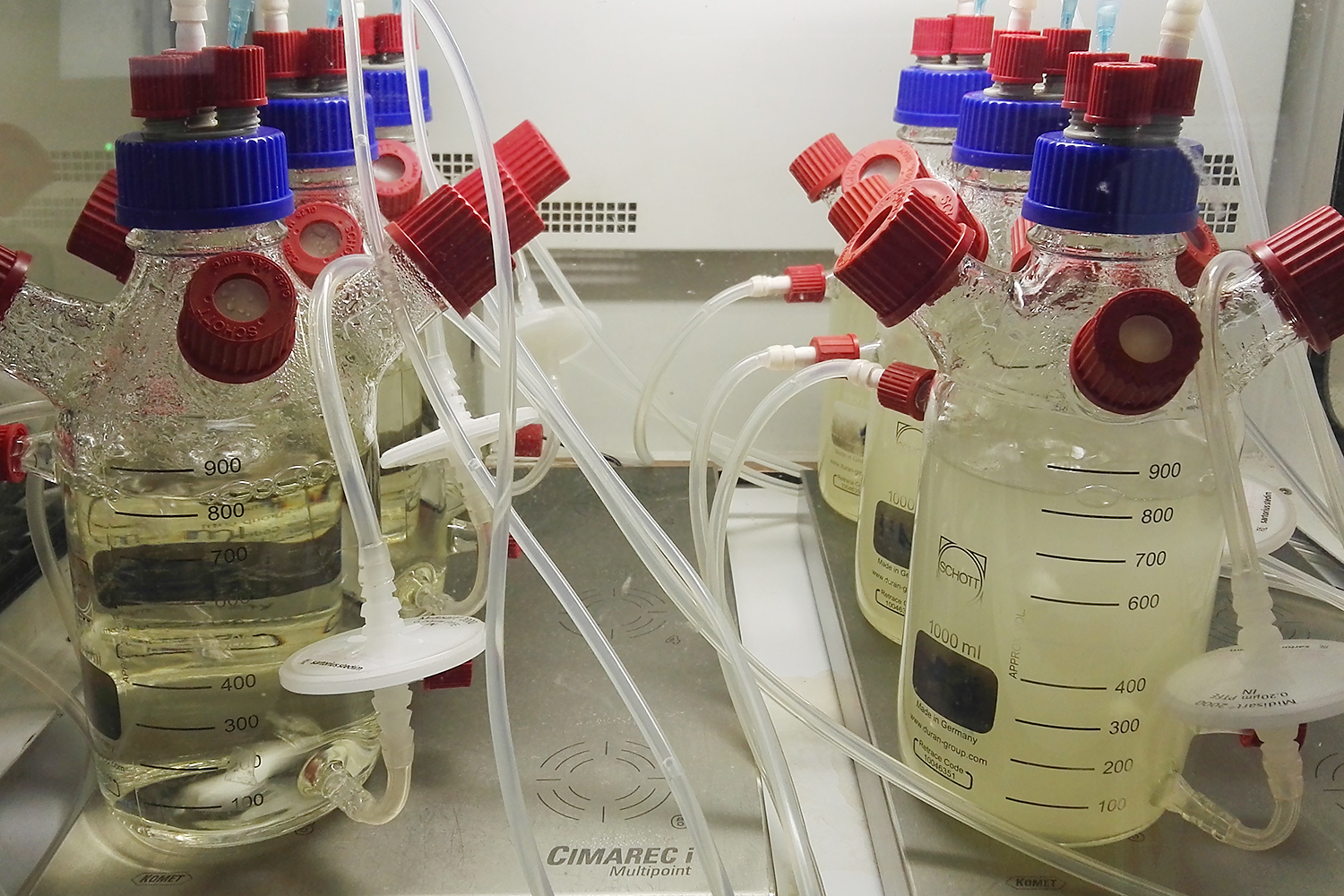 Zunächst legten sie fünf Bioreaktoren mit jeweils identischen Mikroorganismen-Gemeinschaften an und untersuchten, ob und inwieweit sich deren Zusammensetzung über die Zeit veränderte. Dafür nutzten sie die sogenannte Hochdurchsatz-Durchflusszytometrie, ein Verfahren, mit dem Einzelzellen schnell untersucht und eingehend charakterisiert werden können. Dabei werden verschiedene Parameter der Bakterien wie Zellgröße, Zelldichte als auch DNA-Gehalt ermittelt. Eine Probe mit 200.000 Bakterienzellen kann so binnen weniger Minuten hochpräzise als Fingerprint – etwa vergleichbar mit einem QR-Code – dargestellt werden. Die anfallenden riesigen Datenmengen wertete das Forschungsteam mit speziellen Computerverfahren aus und konnte damit Veränderungen in der mikrobiellen Zusammensetzung feststellen. „Wie vermutet, entwickelten sich die Mikroorganismen-Gemeinschaften in den fünf Bioreaktoren trotz identischer Bedingungen ganz unterschiedlich“, sagt Susann Müller. In einem nächsten Schritt schalteten die Forscher:innen einen Loop ins System: Ein sechster Bioreaktor, der mit jedem der fünf Reaktoren jeweils über Zu- und Abfluss verbunden war. Dadurch fand zwischen den Bioreaktoren ein stetiger Austausch, ein sogenannter Massentransfer statt. „Unsere Untersuchungen zeigten eindrücklich, dass die mikrobiellen Gemeinschaften in den Bioreaktoren durch den Loop miteinander synchronisiert wurden und sich ihre Zusammensetzung und Funktionen dauerhaft stabilisierten“, sagt Müller. „Darüber hinaus war die Überlebenswahrscheinlichkeit von Mikroorganismen mit geringer Wachstumsrate deutlich erhöht. Dieser Rettungseffekt kann für viele biotechnologischen Prozesse tatsächlich entscheidend sein.“
