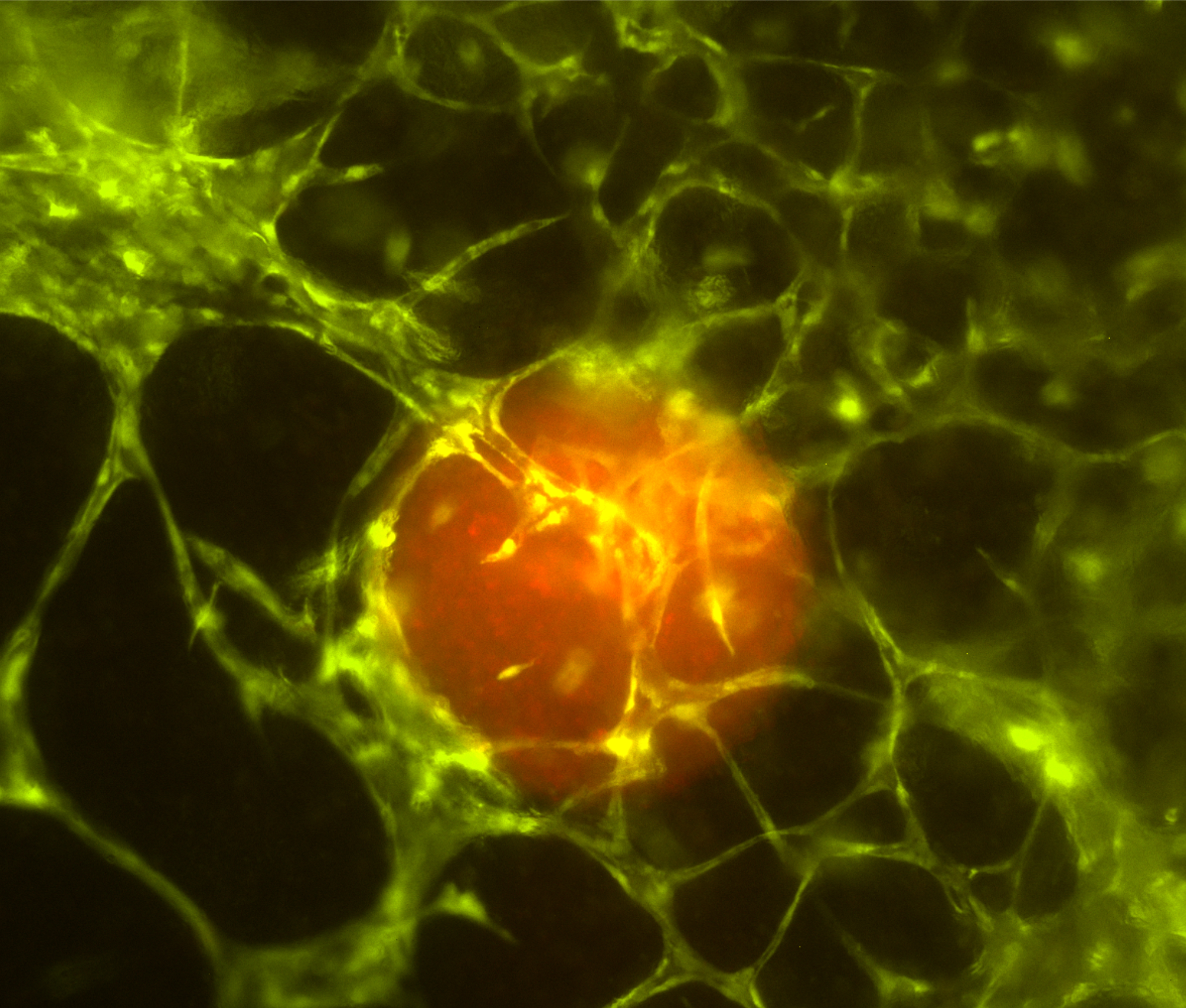 Die Innsbrucker ForscherInnen haben in das neuartige 3D-Tumormikroumgebungs-Modell schon während des Druckprozesses Tumorsphäroide (kugelfömige Tumorzellag-gregate, Anm.) aus einem Neuroblastom – einer der häufigsten soliden Tumoren bei Kleinkindern – zwischen die Zellen des Gewebes gesetzt, welche dort innerhalb von zwei bis drei Wochen zu einem Mikrotumor heranwachsen. „So war es uns möglich, zu be-obachten, wie dieser kleine Tumor die Kapillaren aus dem Gewebe anzieht und diese dann in den Tumor hineinwachsen. Der Tumor baut sich also seine eigene Versorgungs-struktur auf. Dieses 3D-Modell wird uns helfen, die Mechanismen der Karzinogenese, also des Tumorwachstums, noch besser zu verstehen und damit die Tumormikroumgebung als therapeutisches Ziel für die Krebsbekämpfung besser nutzbar zu machen – und das ohne Tierversuche“, betont Mikrobiologe und Laborleiter Michael Außerlechner.