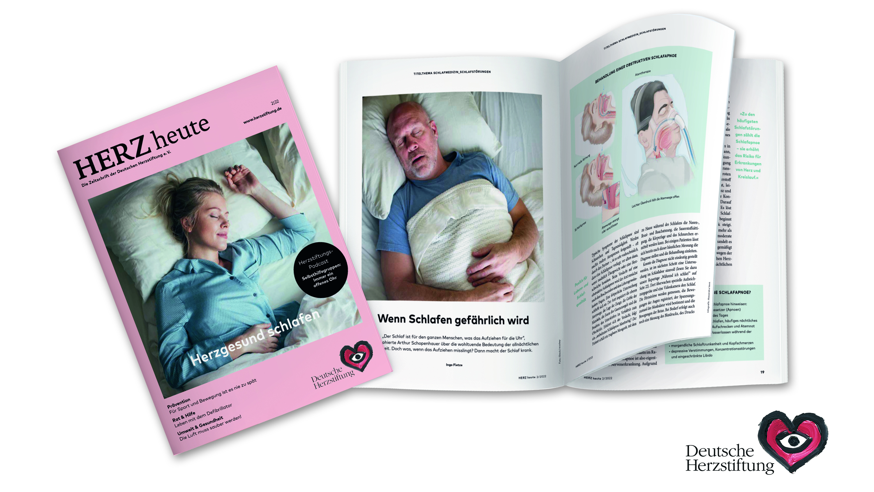 Die Zeitschrift HERZ heute erscheint viermal im Jahr. Sie wendet sich an Herz-Kreislauf-Patienten und deren Angehörige. Weitere Infos zum Thema bietet die aktuelle Zeitschrift HERZ heute 2/2022 „Herzgesund schlafen“. Ein kostenfreies Probeexemplar ist unter Tel. 069 955128-400 oder unter www.herzstiftung.de/bestellung erhältlich.