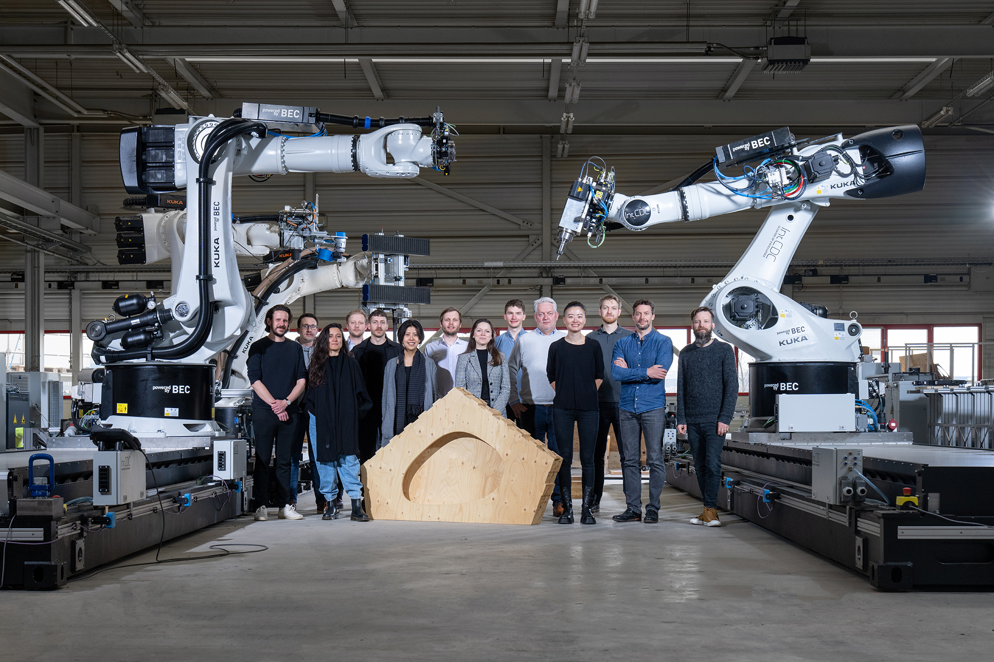 Der Exzellenzcluster „Integratives computerbasiertes Planen und Bauen für die Architektur“ (IntCDC) der Universität Stuttgart hat vier Roboterplattformen für die automatisierte Herstellung von Holz- und Faserbauelementen erhalten. Die Anlagen sind ein Meilenstein für die Erforschung der mobilen, flexiblen Vorfertigungstechnik und sollen das Bauen der Zukunft nachhaltiger und effizienter machen.