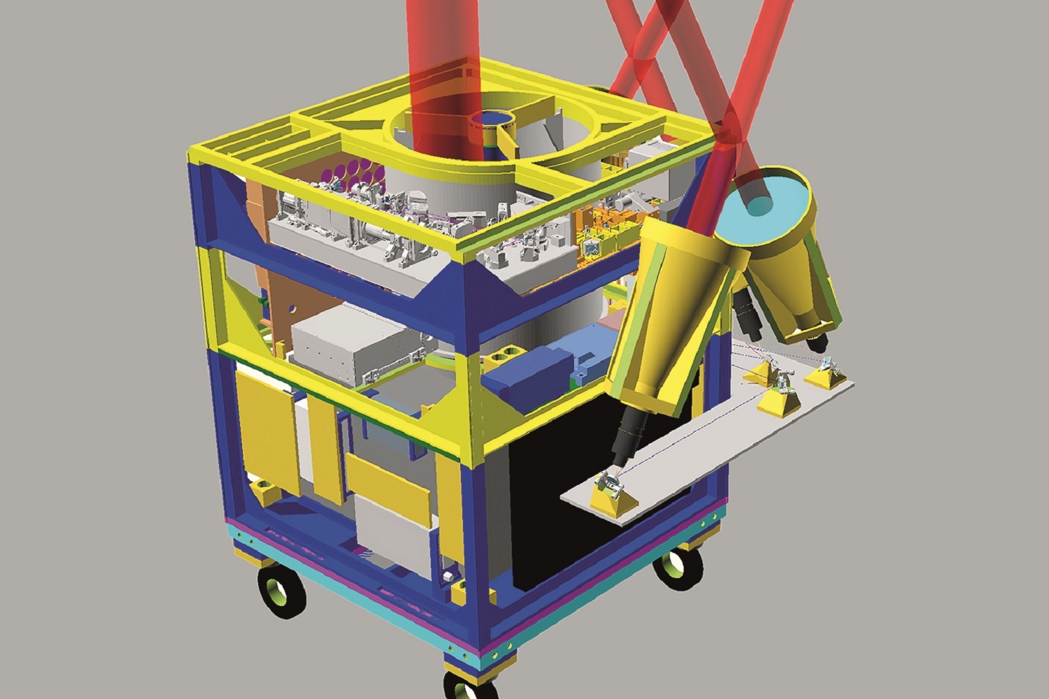 Kernstück dieses Doppler-LIDAR-Systems ist ein diodengepumpter Alexandritlaser. Diese Strahlquelle ermöglicht die extrem kompakte Bauform des Gesamtinstruments, einschließlich der Sende- und Empfangsoptik mit 1m x 1m x 1m Volumen. »Der Vorläufer, basierend auf einem lampengepumpten Alexandritlaser, wurde am Leibniz IAP entwickelt und war in einem Schiffscontainer installiert«, berichtet Dr. Michael Strotkamp vom Fraunhofer ILT in Aachen. »Mit der neuentwickelten diodengepumpten Strahlquelle sind wir den alten blitzlampengepumpten Systemen auch bei Stabilität und Lebensdauer deutlich überlegen.«