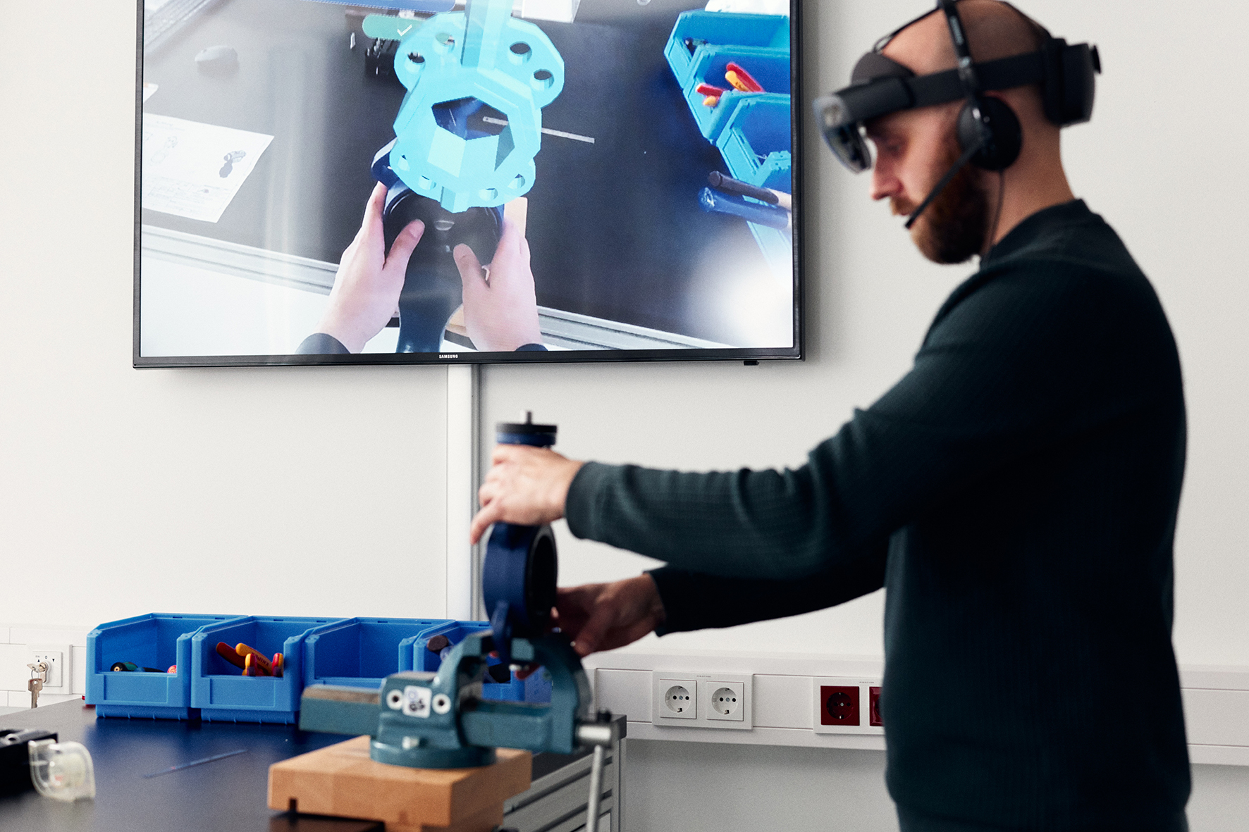 Das Team hat ein kognitives, seh- und hörbares Assistenzsystem entwickelt, das vorausschauend und individuell Unterstützung gibt, zum Beispiel in der manuellen Montage, Lagerlogistik oder bei der Bedienung von Maschinen. Durch eine Datenbrille mit intelligentem Kopfhörer und Mikrofon werden die Hilfshinweise übermittelt und das Lernen und eigenständige Durchführen von Tätigkeiten vereinfacht. Dadurch sinkt die Fehlerquote und die Beschäftigten werden deutlich weniger belastet.