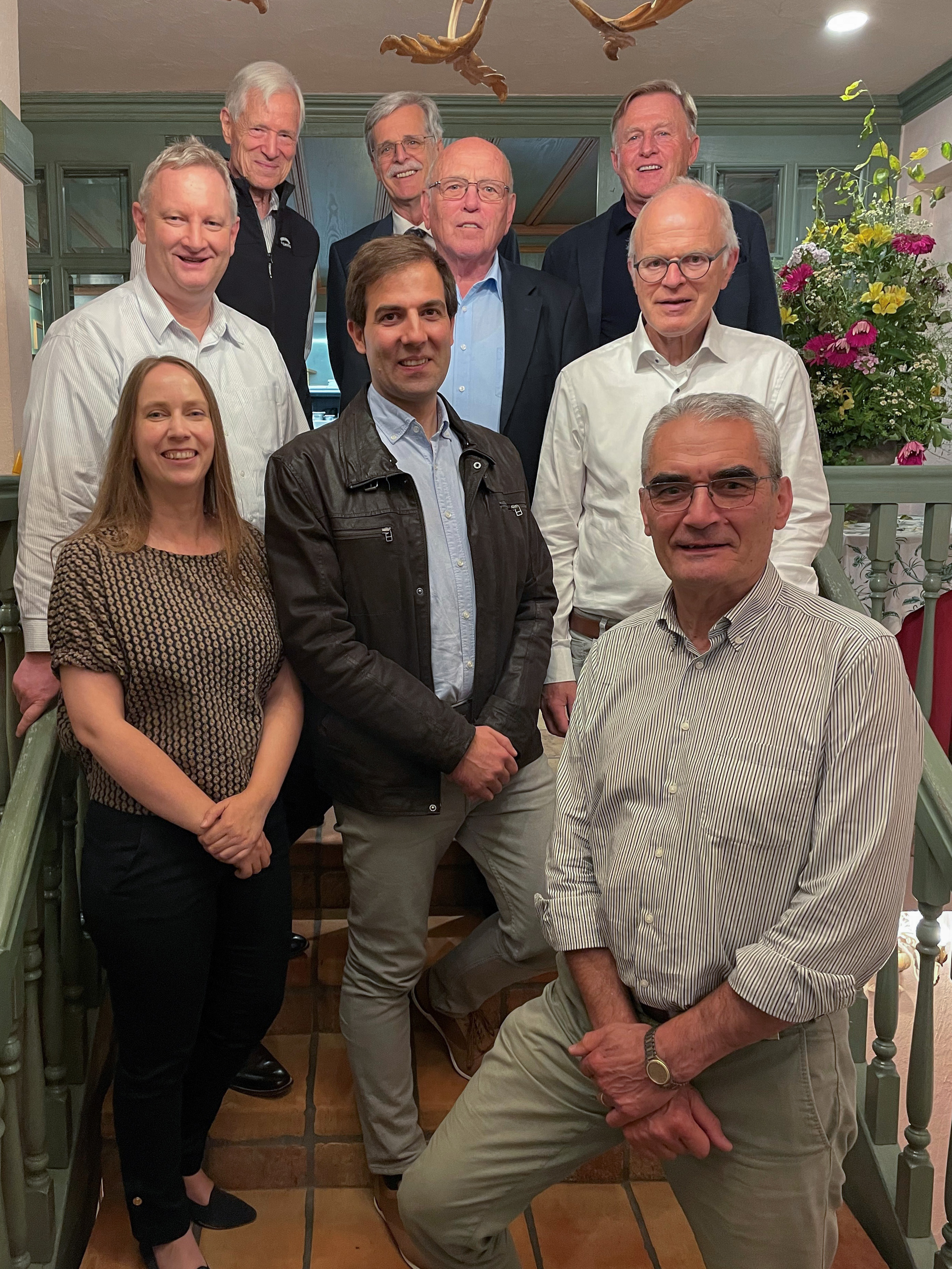 (v.l.n.r. hinten): Ludwig Scheidegger (ehem. Obmann Stiftungsrat WSS), Prof. Dr. Bernd Engler (Rektor Universität Tübingen), Prof. Dr. Peter Athanas (Stiftungsrat WSS), Prof. Dr. Bernd Pichler (Direktor WSIC), Germain Mittaz (ehem. Stiftungsrat WSS), Dr. Hubert Keiber (Obmann Stiftungsrat WSS), Prof. Dr. Bettina Weigelin (WSIC Professorin), Prof. Dr. André Martins (WSIC Professor) und Gianni Operto (Vorsitzender des Wissenschaftlichen Beirats WSS).