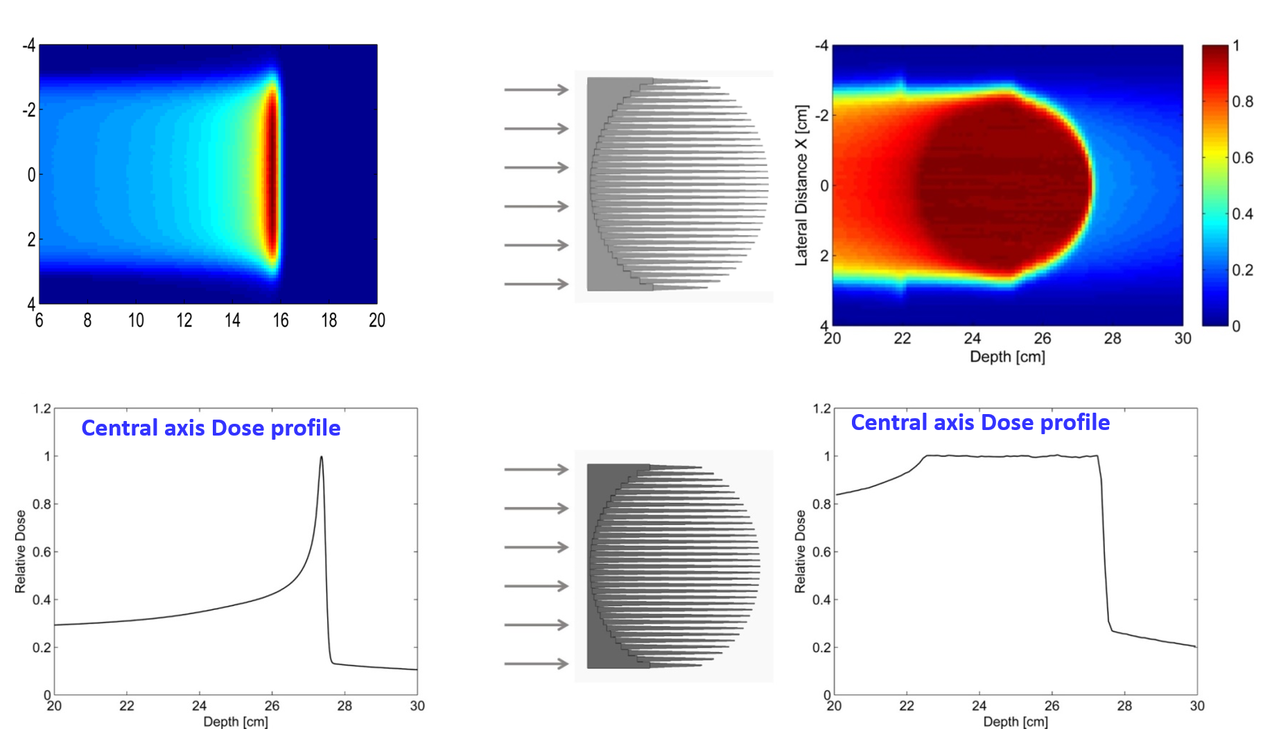 Die Beteiligten nehmen dabei die FLASH-Therapie mit Protonen in den Fokus. Ziel der Zusammenarbeit ist die Entwicklung und Validierung eines neuen klinischen Workflows. Statt des Raster-Scannings mit seinen etwa 30 bis 60 verschiedenen Energieschritten wird nur ein einziger Energieschritt verwendet. Damit die Bestrahlung trotzdem an das Tumorvolumen angepasst werden kann, wird ein sogenannter patientenindividueller 3D-Reichweitenmodulator („3D-RM“) eingesetzt, um ein vergleichbares Ergebnis – jedoch in viel kürzerer Zeit im Millisekundenbereich – zu erzielen. Dieser relativ kompakte 3D-RM wird mit hochqualitativen 3D-Druckern hergestellt, ist für die jeweilige Tumorform optimiert und besteht aus vielen pyramidenförmigen Grundstrukturen, die alle eine mikroskopisch genau definierte Form haben. Der Reichweitenmodulator wird für jeden Patienten individuell hergestellt und in der Strahlführung vorgeschaltet, bevor die Teilchen auf den Körper treffen. So kann die gewünschte Tumor-angepasste Verteilung der Dosis erfolgen. In den kommenden zwei Jahren werden die Forschungsteams mit VARIAN daran arbeiten, diesen Ablauf wissenschaftlich-technisch zu etablieren und zu optimieren.