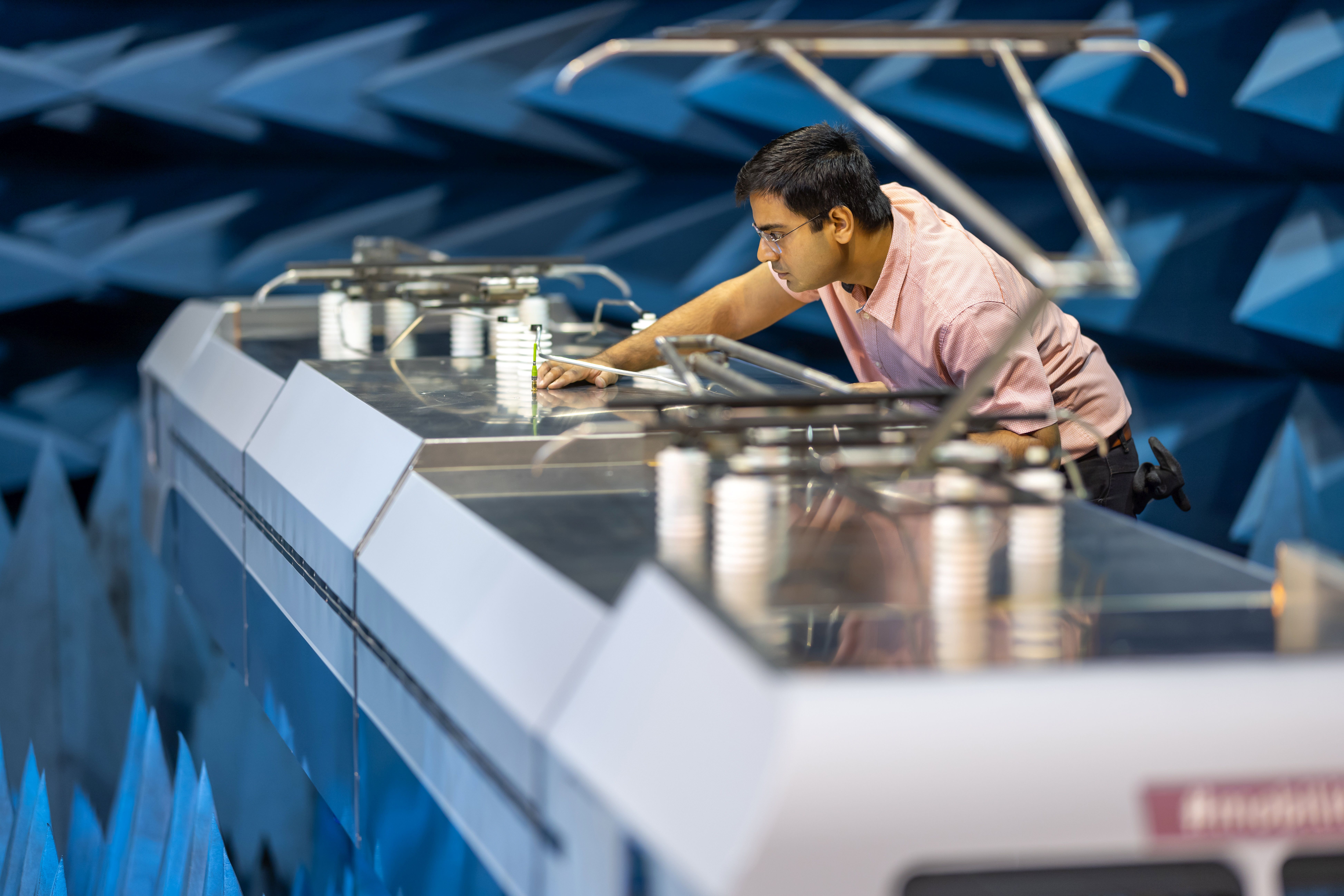 Das Herzstück eines flächendeckenden Einsatzes vernetzter und automatisierter Schienenfahrzeuge sind Antennen zur drahtlosen Datenübertragung. Die Anforderungen der Bahnbetreiber nach sicherer Kommunikation und Signalisierung und der Wunsch der Bahnreisenden nach einer vernetzten Umgebung an Bord lassen die Zahl und die Qualität der dafür auf Schienenfahrzeugen erforderlichen Antennen rapide steigen. Vor ihrem Einsatz muss die Funktion der Antennen in der Praxis bewertet und abgesichert werden. Bei Entwurf, Entwicklung und Test neuer Antennen für Schienenfahrzeuge ergeben sich besonders anspruchsvolle Herausforderungen: Um die notwendigen Messungen im Labor vorzunehmen, sind die Loks mit ihren 20 bis 30 Metern Länge und 60 bis 90 Tonnen Masse viel zu groß und zu schwer. Andererseits werden Messungen auf einem Eisenbahnbetriebsgelände durch die Umgebung, etwa Gleisanlagen oder Wartungshallen, verfälscht. Das Thüringer Innovationszentrum Mobilität (ThIMo) an der TU Ilmenau und die Funkwerk Systems GmbH, ein auf Bahntechnik spezialisiertes Industrieunternehmen aus dem thüringischen Kölleda, arbeiten daher seit zwei Jahren mit Hochdruck an leistungsfähigen Lösungen dieses Problems.