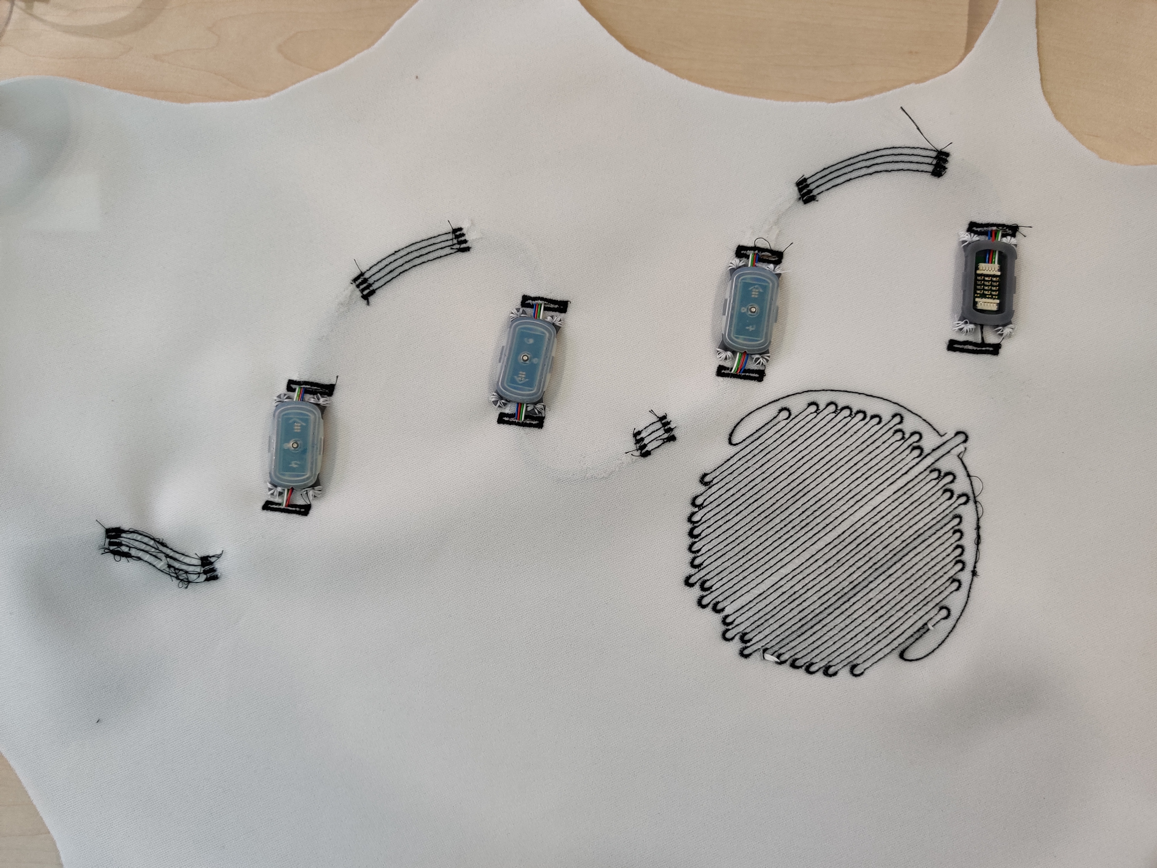 Under the robotic manta ray’s deceptively lifelike shell lies intricate technology: A permeable and therefore pressure-neutral fabric skin is created and fitted with integrated microelectronics for touch, flow, motion, and position sensors. This textile skin is then pulled tight over the robotic fins, creating a soft robotics machine that can sense its surroundings. The team at Fraunhofer IZM is responsible for the electronics that make this possible: They developed sensor nodes suitable for submersible use that can collect and pre-process the sensor data. These nodes do not only have to be fit for purpose, they also need to be extremely miniaturized to fit underneath the thin fabric skin and integrate the necessary connectors. In active operations below the waterline, these sensors can track parameters like acceleration, pressure, or absorbency. The researchers also included LEDs in the circuit board design that let the robotic manta rays communicate with human divers, for instance to signal a turn.