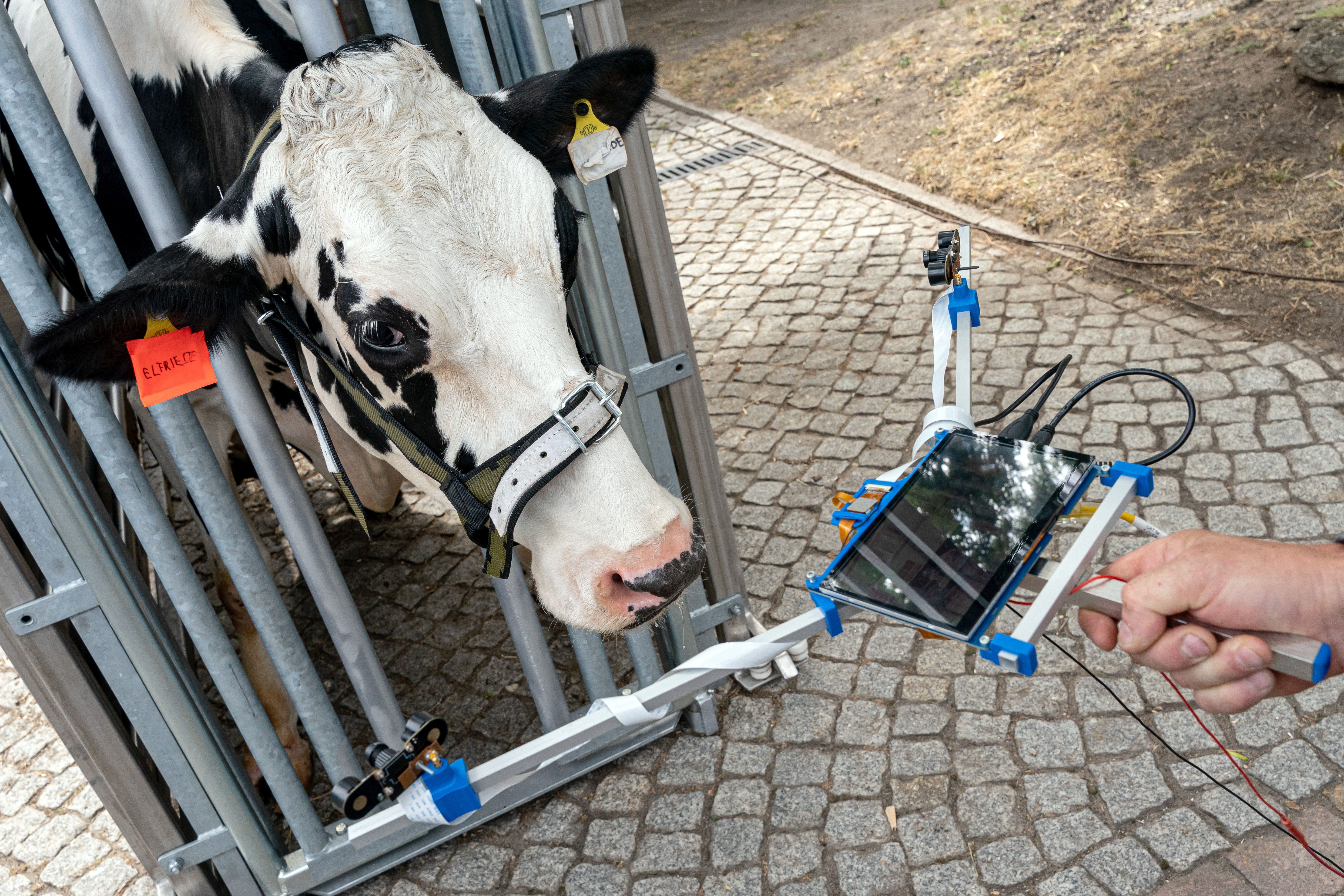 „Das System kann man je nach örtlichen Gegebenheiten individuell aufbauen“, erklärt der Experte für Rinder der Veterinärmedizinischen Fakultät. Bereits jetzt werde dieser Prototyp in einigen landwirtschaftlichen Betrieben erfolgreich getestet. Zusätzlich zu der Sensortechnik für die Augentemperaturmessung beim Rind, die gemeinsam mit dem Fraunhofer-Institut für Elektronische Nanosysteme ENAS in Chemnitz weiterentwickelt wird, arbeitet Starke auch mit dem Prototypen eines Handgerätes mit Sensoren zur Messung der Hornfeuchtigkeit beim Rind. Diese ist ebenfalls ein wichtiges Merkmal zum Beurteilen der Haltungsumwelt der Tiere und damit auch indirekt für die Gesundheit der Tiere. Hier arbeiten die Veterinärmediziner:innen mit dem Kurt-Schwabe-Institut für Mess- und Sensortechnik Meinsberg e.V. (KSI) zusammen.
