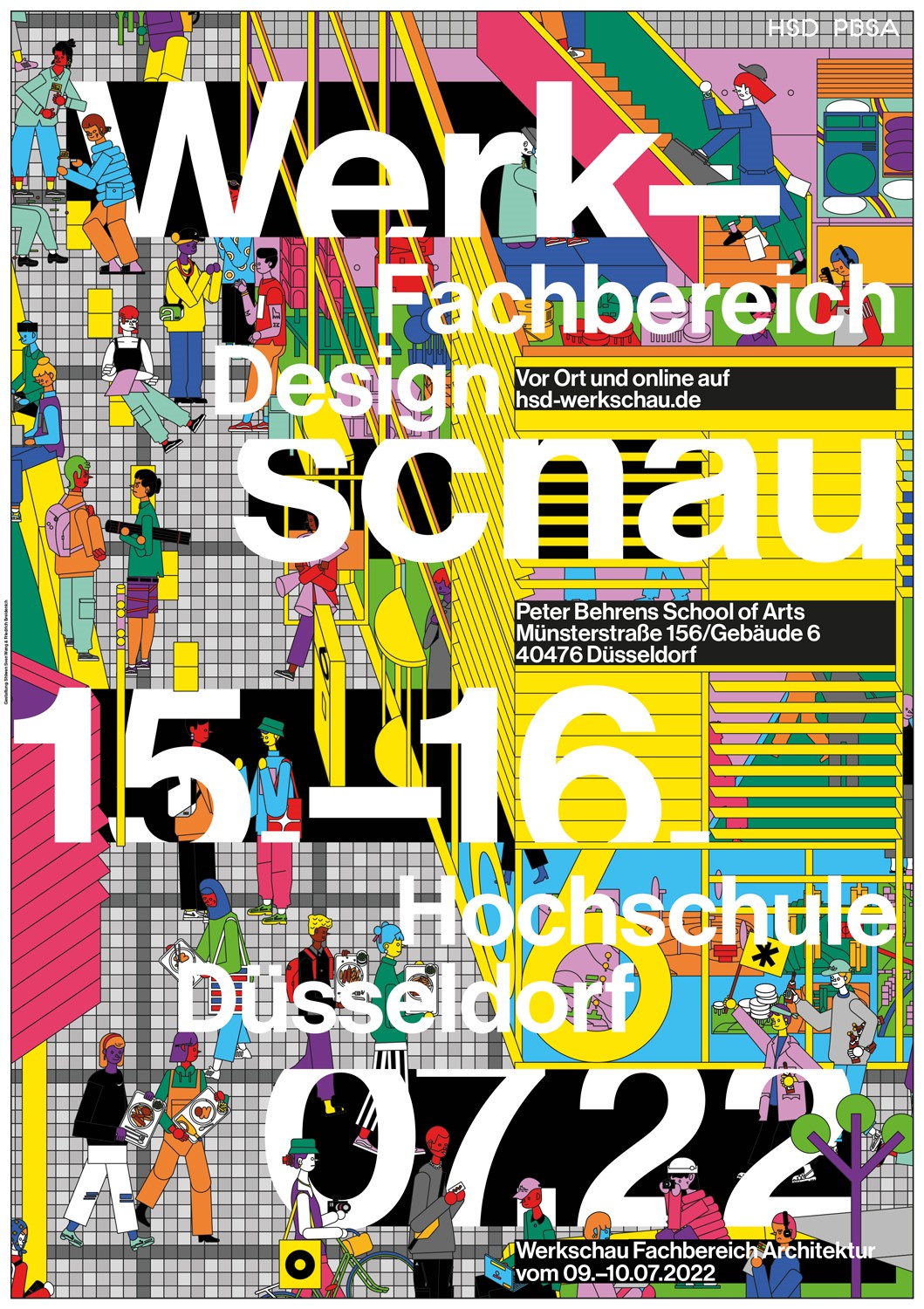 Am 15. und 16. Juli 2022 findet nach der pandemiebedingten Pause endlich wieder die Werkschau der Absolvent*innen des Fachbereichs Design der Hochschule Düsseldorf in Präsenz statt. Von den knapp 100 Arbeiten aus den vier Studiengängen Kommunikationsdesign, Retail Design, New Craft Object Design und Exhibition Design können sich Besucher*innen an beiden Werkschautagen inspirieren lassen.