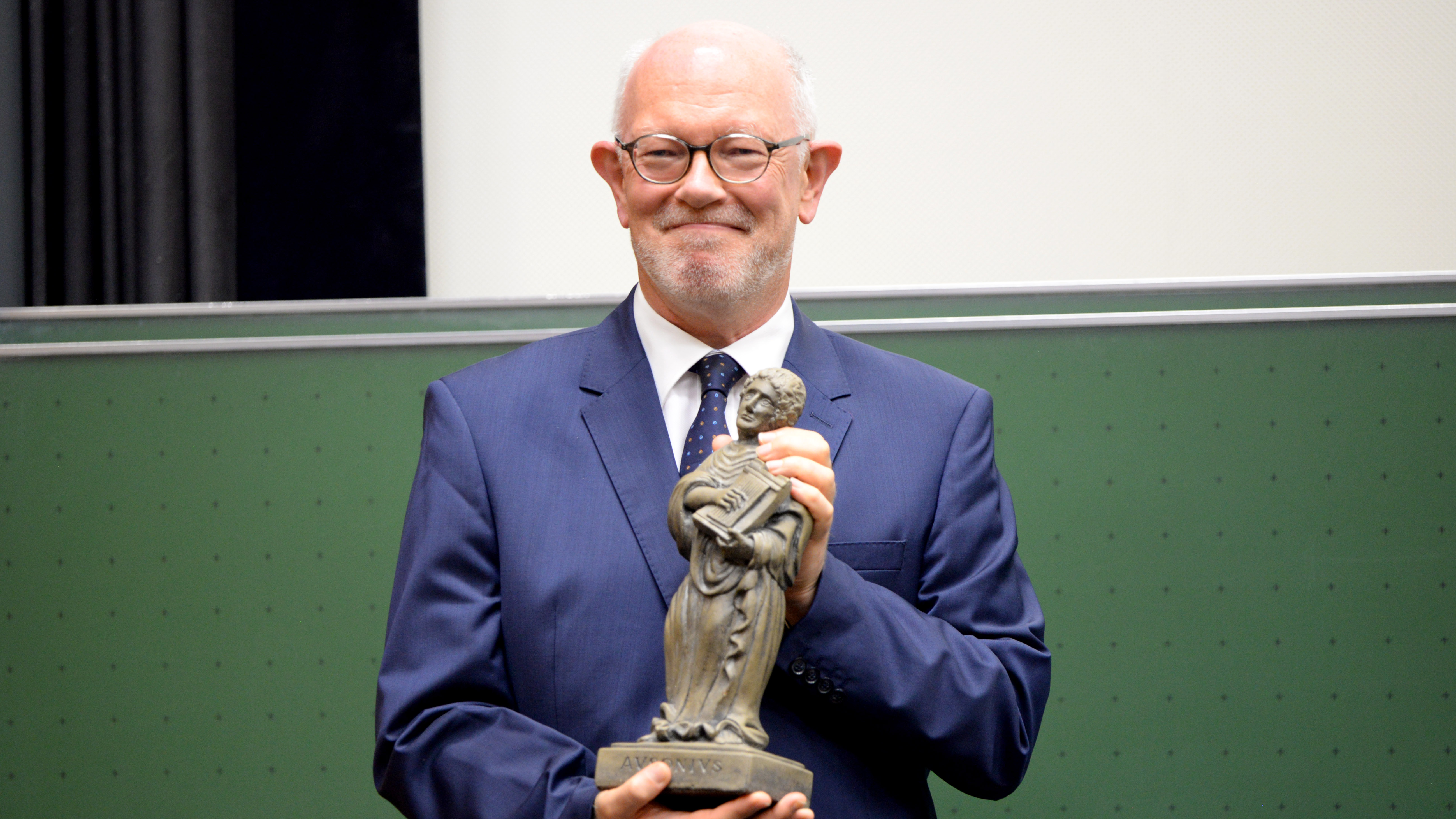 Nur zwei Tage nach seinem Geburtstag durfte Prof. Dr. Gregor Weber in Trier ein weiteres Geschenk in Empfang nehmen: eine Statuette und die Urkunde für den 23. Ausonius-Preisträger. Diese Auszeichnung wurde dem Althistoriker der Universität Augsburg für sein wissenschaftliches Lebenswerk und „für seine großartigen Leistungen an der Schnittstelle von Altertumswissenschaften und Digital Humanities“ zuteil, so Prof. Dr. Stephan Laux, Dekan des Fachbereichs III der Universität Trier, in seiner Begrüßungsansprache.