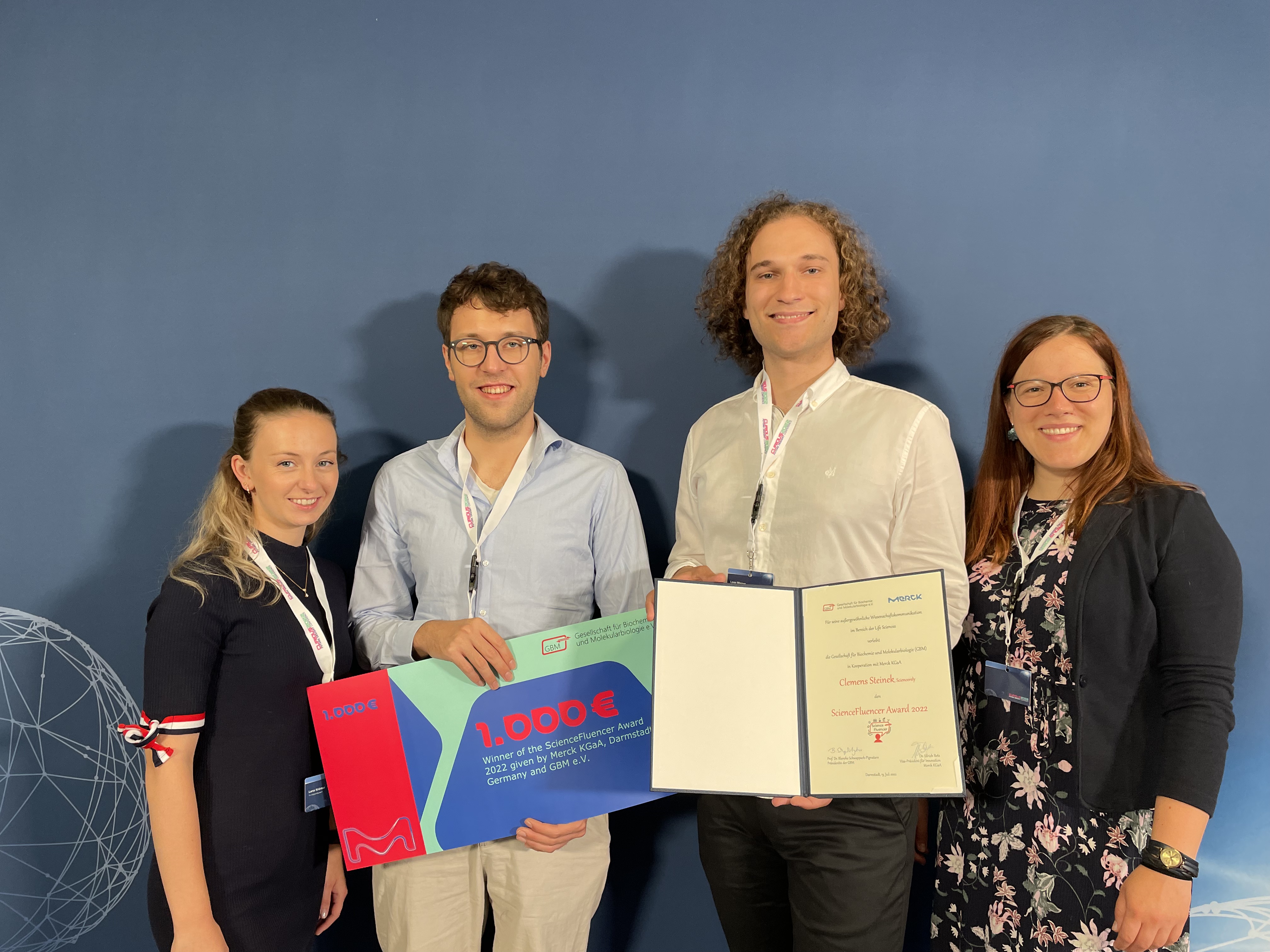 Die AG ScienceFluencer der Junior-GBM hat den Preis gemeinsam mit ihrem Kooperationspartner Merck im Rahmen der Curious2022 Future Insight® Konferenz des Pharmaunternehmens in Darmstadt verliehen.