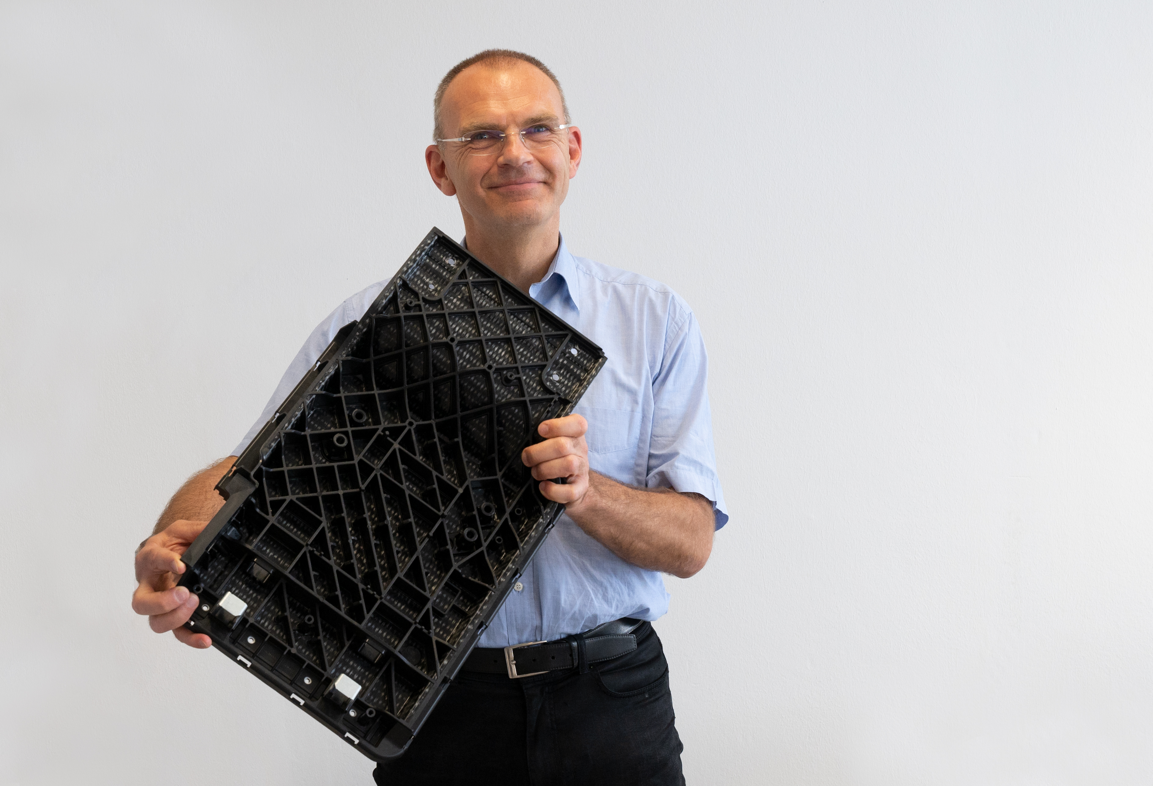 Prof. Dr. Alexander Rost: Das Grandiose ist, dass wir Menschen nachhaltig ausbilden. Es geht um technologische Entwicklungen, die uns helfen, die Herausforderungen der Zukunft zu meistern. Das Thema ist zum Beispiel immer wichtig, wenn etwas bewegt wird. Ich kann das an einem einfachen Beispiel erklären, das ich gerade in meinem Büro habe: Es ist die Durchlade eines Fahrzeugs, ein Teil der Rücksitzbank, das man runterklappen kann, um seine Skier durchzustecken. Das ist hier ein faserverstärkter Leichtbauwerkstoff mit einer Verbundstruktur auf der Rückseite, und dieses Strukturbauteil aus Kunststoff ist nicht nur kostengünstiger, sondern auch um ein Vielfaches leichter als das Originalbauteil aus Stahl und Blech. Wenn das Fahrzeug leichter ist, brauche ich weniger Energie. Das reduziert den Treibstoffverbrauch und ist auch in der Elektromobilität bedeutend. Nachhaltig ist unsere Ausbildung aber auch in einer anderen Hinsicht, nämlich mit Blick auf die Studierenden. Sie bekommen eine Basis, auf die sie ein ganzes Arbeitsleben aufbauen können. Es geht um Technologien in einem Industrieumfeld, das sich schnell entwickelt, und unser besonderes Lehrkonzept vermittelt die Freude an neuen Entwicklungen.