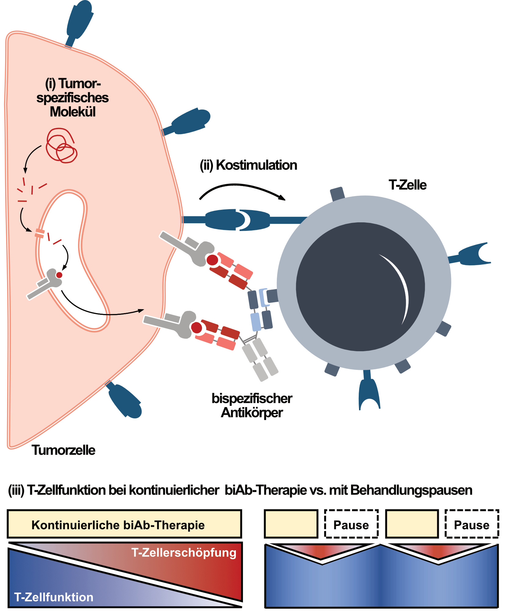 ii) die Modulation von biAb-induzierten T-Zellantworten durch das Vorhandensein von kostimulatorischen und koinhibitorischen Signalen auf Tumorzellen und
