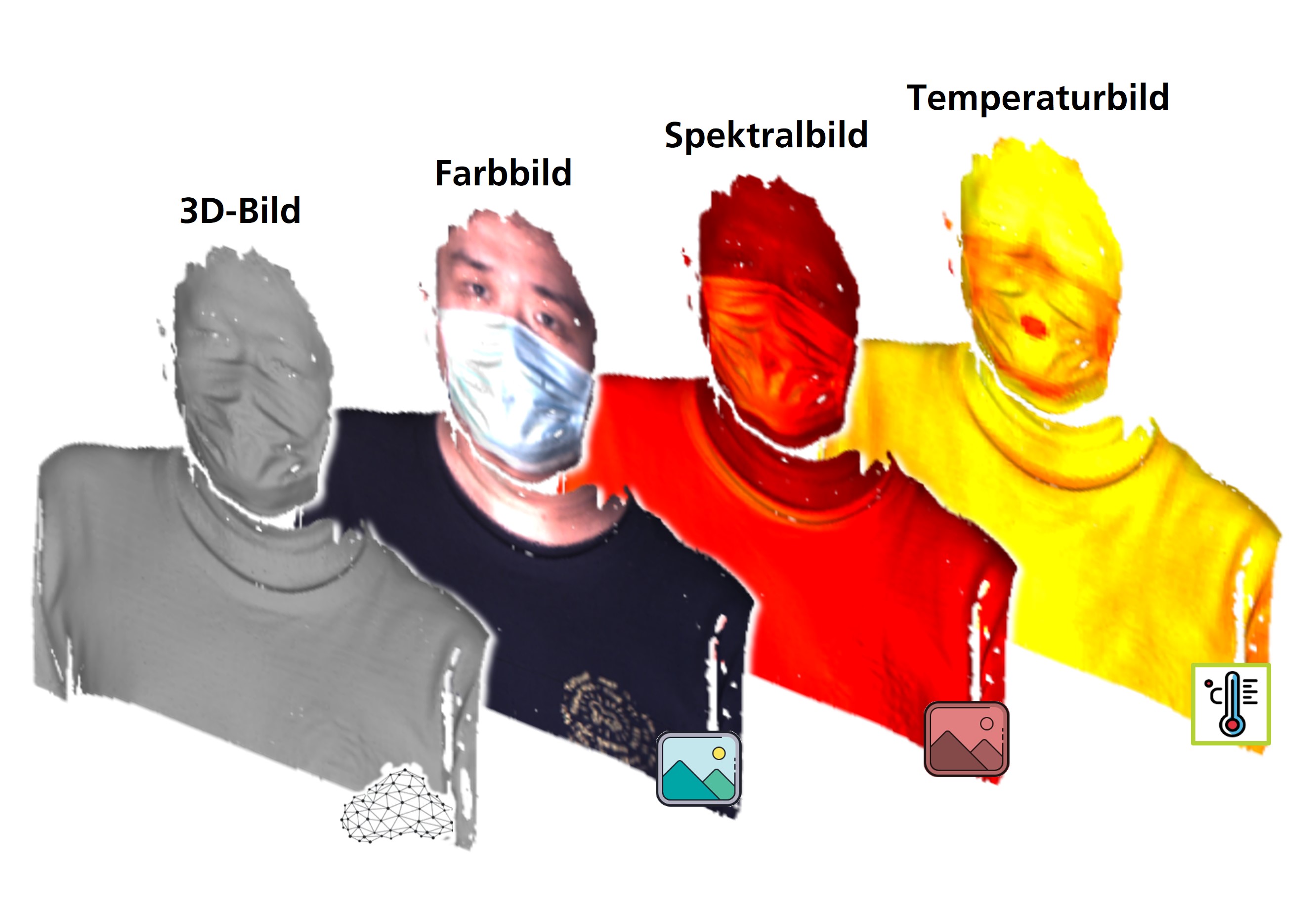 In der multimodalen Bildgebung werden die unterschiedlichen Informationen mehrerer Bildgebungsverfahren – anatomische, funktionelle und molekulare Informationen – miteinander kombiniert. Indem Prof. Gunther Notni, Leiter des Fachgebiets Qualitätssicherung und Industrielle Bildverarbeitung der TU Ilmenau, Farbbilder mit Spektralbildern, Temperaturbildern und 3D-Bildern kombiniert, erzielt er mithilfe von Künstlicher Intelligenz und maschinellem Lernen eine neue Form der Darstellung der zu erfassenden Objekte oder Szenen, die weit über die Fähigkeiten des menschlichen Auges hinausgehen. Die neuen Verfahren der Visualisierung machen Gegenstände und Stoffe und auch deren Eigenschaften sichtbar, die uns beim bloßen Hinsehen verborgen bleiben.