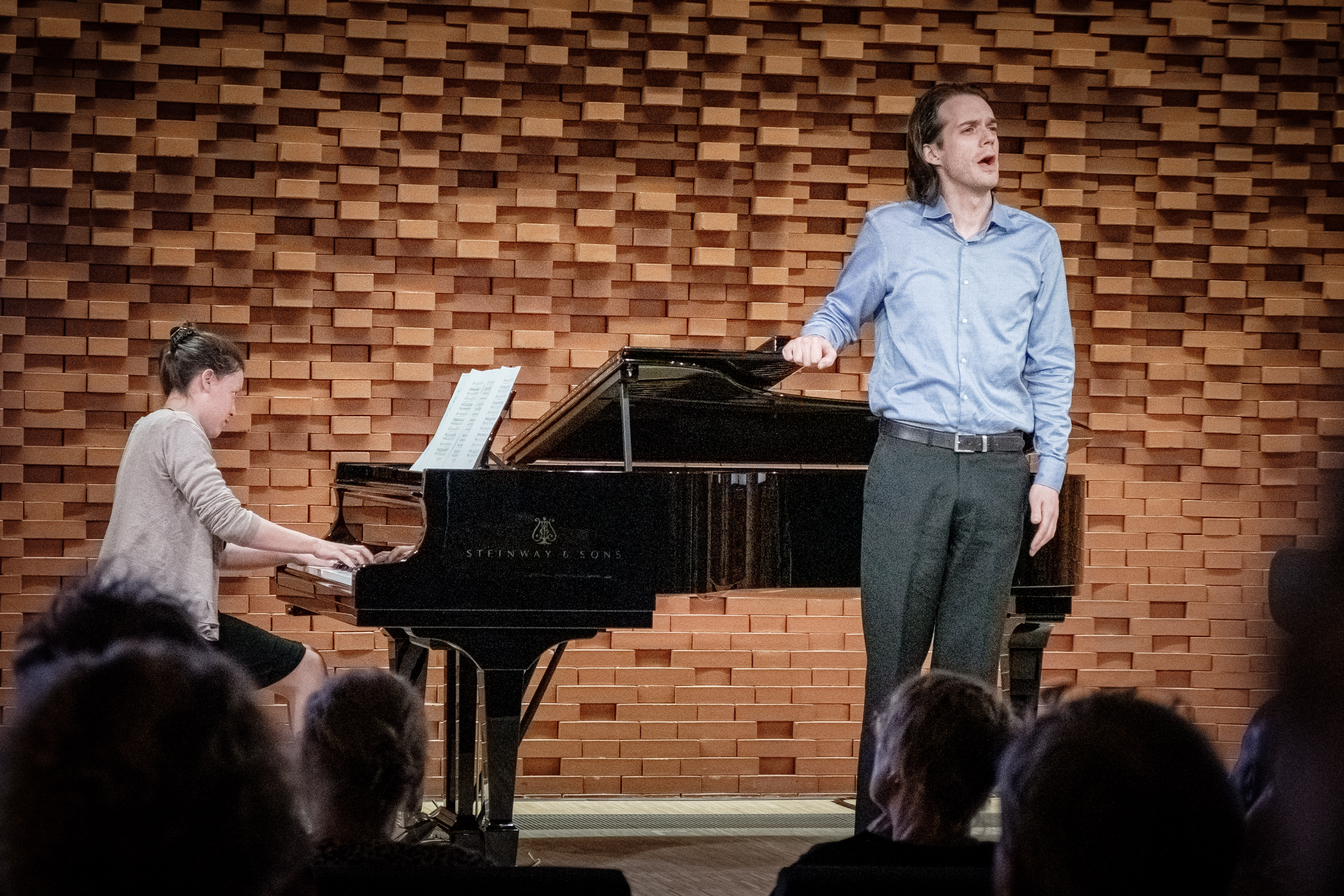 In ihrer zweiten Studie konzentrierten sich die Forscher:innen auf den direkten Vergleich der melodischen Eigenschaften von Liedern und Gedichten. Hierzu luden sie 42 Studienteilnehmer:innen zu einer Konzertvorstellung in das „ArtLab“ des MPIEA ein – einem multifunktionalen Veranstaltungsraum, der wie ein echter Konzertsaal aufgebaut ist. Mit der entsprechenden Technik ausgestattet, dient das ArtLab gleichzeitig auch als wissenschaftliches Labor.