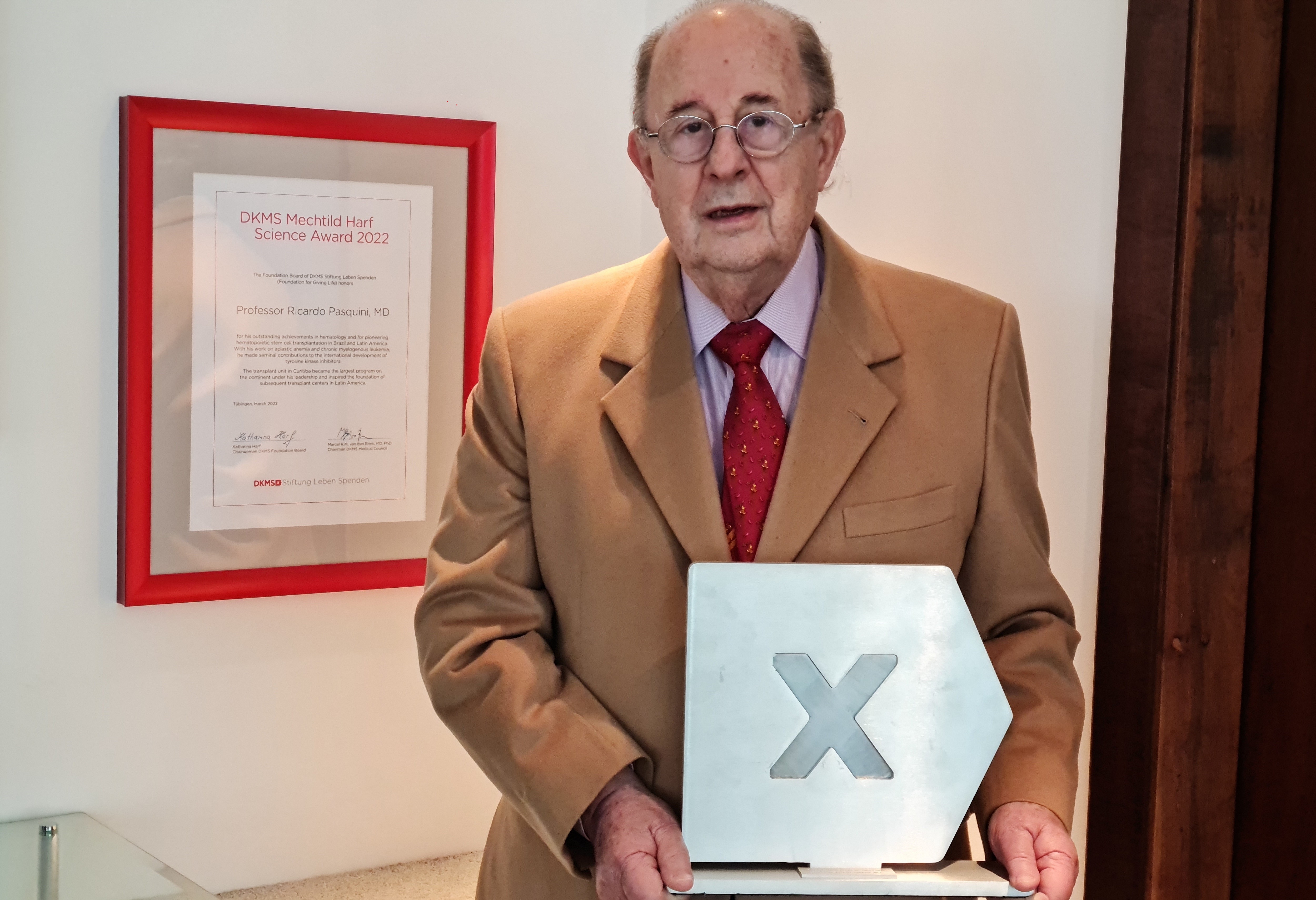 Der herausragende Hämatologe Professor Ricardo Pasquini hat den Mechtild Harf Wissenschaftspreis 2022 der DKMS Stiftung Leben Spenden erhalten. Der brasilianische Mediziner gilt als Pionier auf dem Gebiet der hämatopoetischen Stammzelltransplantation in Brasilien und Lateinamerika. Neben seinen Arbeiten zur aplastischen Anämie forschte er an der chronischen myeloischen Leukämie und leistete dabei wegweisende Beiträge zur internationalen Entwicklung von Tyrosinkinasehemmern.