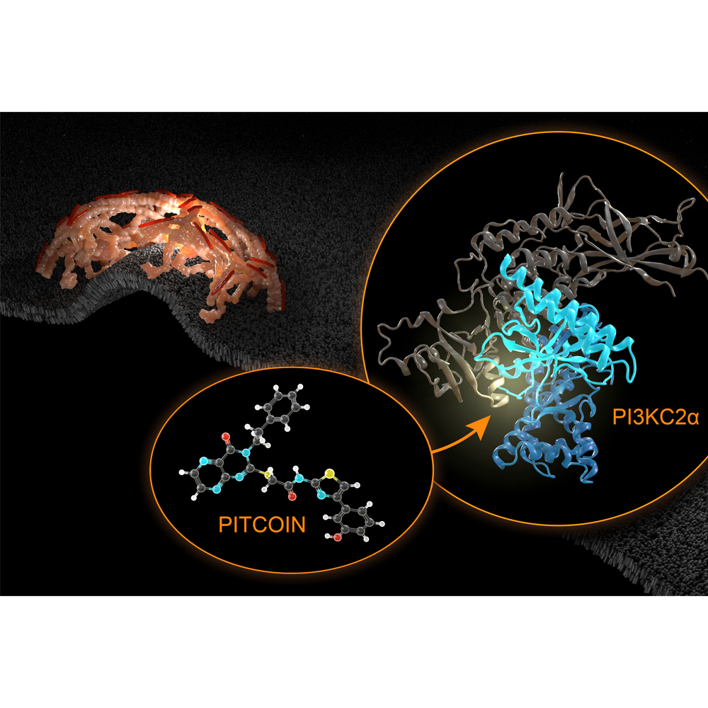 Dr. Wen-Ting Lo from the research group of Prof. Volker Haucke in close collaboration with medicinal chemist Dr. Marc Nazaré and his team, researchers from Toulouse, and the Screening Unit of the FMP (led by Dr. Jens Peter von Kries) now has developed and characterized the first PI3KC2a inhibitors. As a result of extensive chemical optimization studies the researchers succeeded to tweak the selectivity of the inhibitors over the entire kinome, in particular against all other lipid kinases. One of these compounds termed PITCOIN3 displays particularly striking selectivity for PI3KC2a and is shown to potently impair platelet membrane remodeling and thrombus formation.