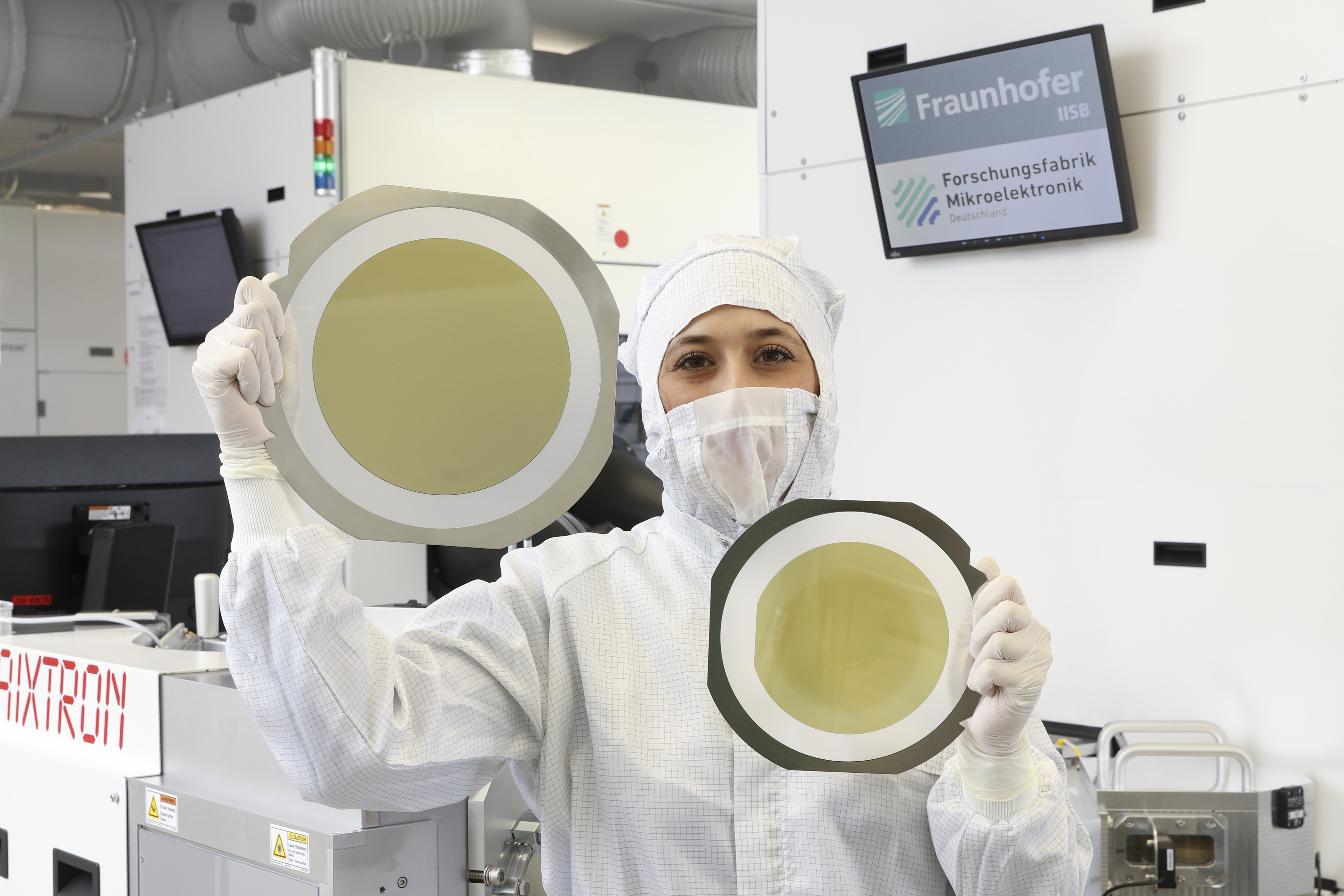 Bei der Herstellung des optimierten SiC kann das Fraunhofer IISB auf eine langjährige Expertise im Bereich der Epitaxie sowohl auf Si- als auch auf SiC-Substraten zurückgreifen. So verfügt das Institut in Erlangen über den weltweit ersten an einer Forschungseinrichtung betriebenen Planeten-Epitaxiereaktor für 150- und 200-mm-SiC-Wafer. Seit einigen Jahren pflegt das Fraunhofer IISB eine strategische Kooperation mit der Firma AIXTRON bei der Entwicklung von SiC-Anlagen und -Prozessen. AIXTRON ist ein weltweit führender Anbieter von Anlagen für die SiC-Epitaxie nach dem CVD-Verfahren (CVD, englisch für „Chemical Vapor Deposition“). In einem Reinraum des IISB unterhalten beide Partner ein gemeinsames „Joint Lab“, um zusammen Epitaxie-Geräte und -Prozesse weiterzuentwickeln. Durch das Modell der „Joint Labs“ lassen sich intensive Synergien zwischen Industrie und Wissenschaft realisieren. Für das Institut stellt die Kooperation mit AIXTRON eine ideale Möglichkeit dar, seine Aktivitäten auf dem Gebiet der industriellen SiC-Epitaxie-Entwicklung wie nur wenige andere Forschungseinrichtungen auszubauen. AIXTRON wiederum profitiert von der direkten Einbindung in die Reinraum-Technologielinie des IISB und den umfangreichen Charakterisierungs- und Analysemöglichkeiten vor Ort. Zudem können sich beide Partner den hohen technologischen und personellen Aufwand teilen, der den extremen Qualitätsanforderungen an das Material geschuldet ist. Durch die direkte Zusammenarbeit mit einem renommierten Industrieunternehmen inhouse kann das IISB sehr spezielle Epitaxie-Schichten für High-End-Demonstrator¬bauelemente erzeugen, welche kommerzielle Anbieter so nicht anbieten können.