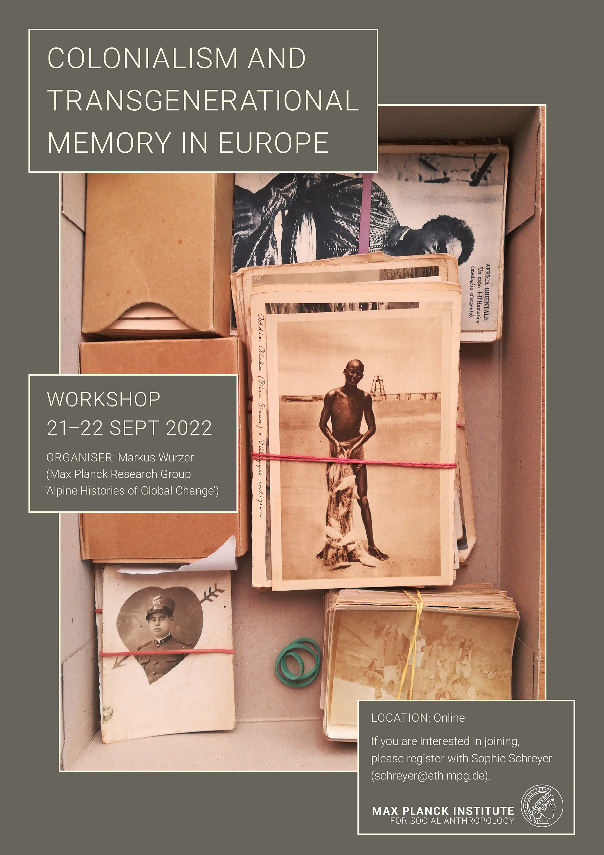 An online workshop entitled “Colonialism and Transgenerational Memory in Europe” will take place on 21 and 22 September at the Max Planck Institute for Social Anthropology (MPI). Historians and anthropologists will address the question of how memories of the colonial past in Europe, passed down in families, play a role in the present. The workshop is organized by Markus Wurzer, a member of the independent MPI research group ‘Alpine Histories of Global Change’ at the MPI. If you are interested in joining, please register with Sophie Schreyer (schreyer@eth.mpg.de).