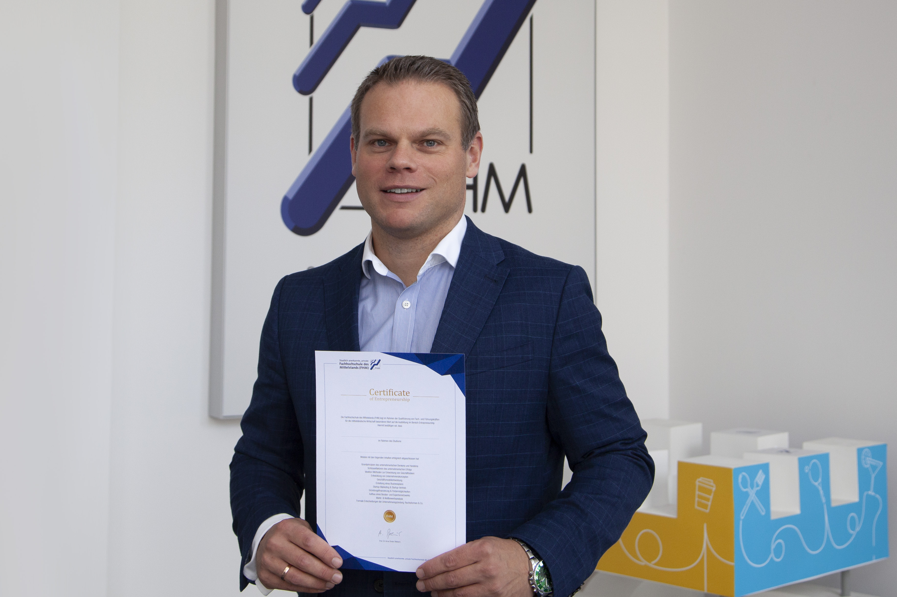 Ab sofort verleiht die Fachhochschule des Mittelstands (FHM) fast allen Absolventinnen und Absolventen ihrer Bachelor-Studiengänge im Rahmen der Zeugnisübergabe das „Entrepreneurship-Zertifikat“ – erstmalig beim Abschluss des Studienjahres 2021/2022. Die FHM ist die einzige Hochschule in Deutschland, an der fast alle Studierenden im Laufe ihres Bachelorstudiums Module im Bereich Unternehmensgründung absolvieren – ganz egal, ob sie Betriebswirtschaftslehre, Psychologie, Online-Marketing oder Sozialpädagogik studieren.
