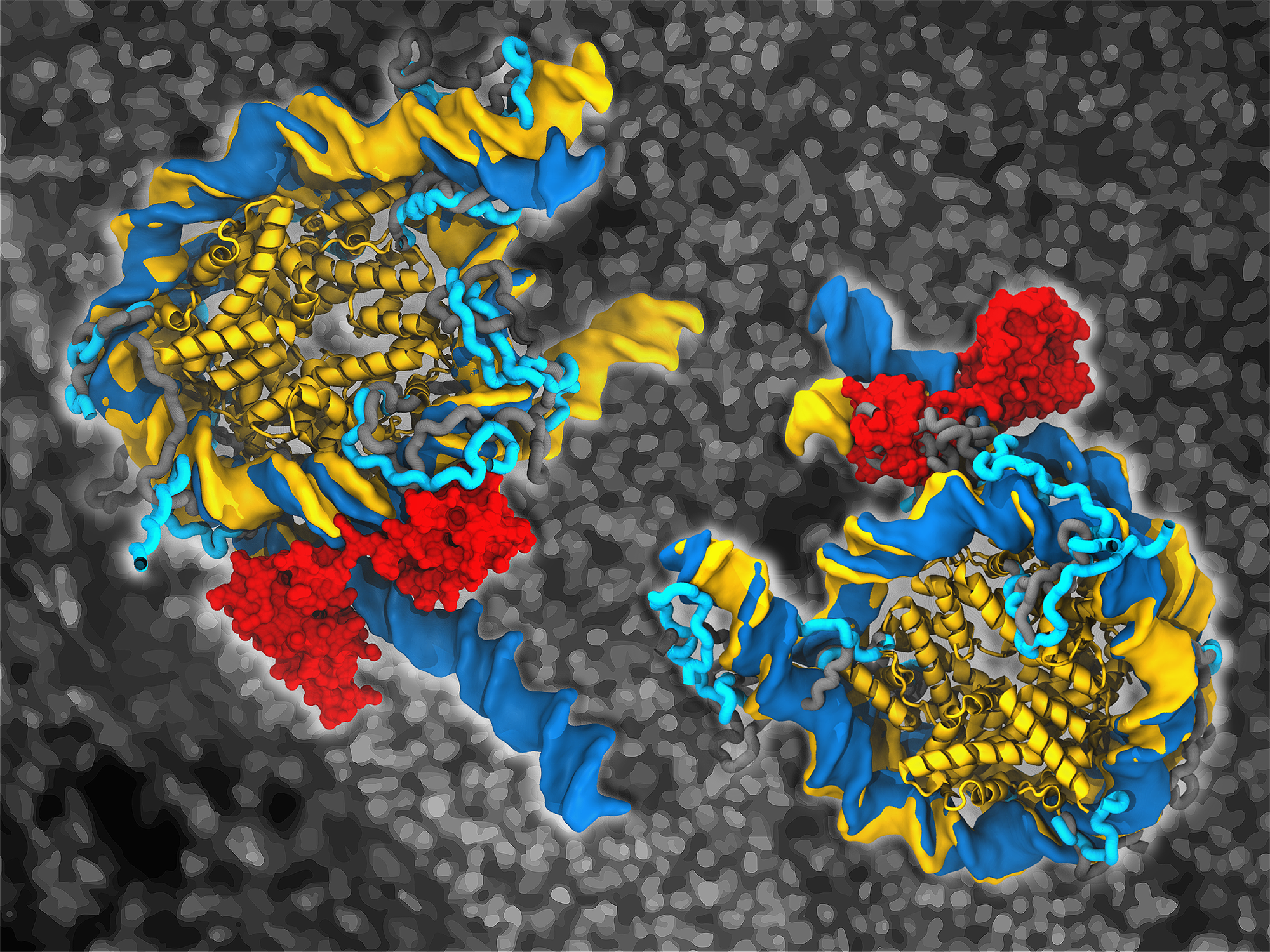 Adulte Zellen können mithilfe eines Cocktails aus nur vier Proteinen in embryonale stammzellähnliche Zellen (induzierte pluripotente Zellen, iPSC) umgewandelt werden. In den letzten Jahren hat diese Technologie der zellulären Umprogrammierung einen großen Beitrag zur Krankheitsmodellierung, Arzneimittelentwicklung und zu Zellersatztherapien geleistet. Allerdings sind viele Fragen zu den molekularen Mechanismen dieser Umwandlung noch unbeantwortet. Ein wesentlicher Schritt ist zum Beispiel die Öffnung der DNA in den umzuwandelnden Zellen. Jede unserer Zellen enthält etwa zwei Meter DNA, die in einer als Chromatin bezeichneten Struktur verpackt sind. Im Chromatin ist die DNA eng um Histone in sich wiederholenden Struktureinheiten, den so genannten Nukleosomen, gewickelt. Wie öffnen nun diese vier Proteine die DNA, wenn sie in erwachsenen Zellen exprimiert werden?