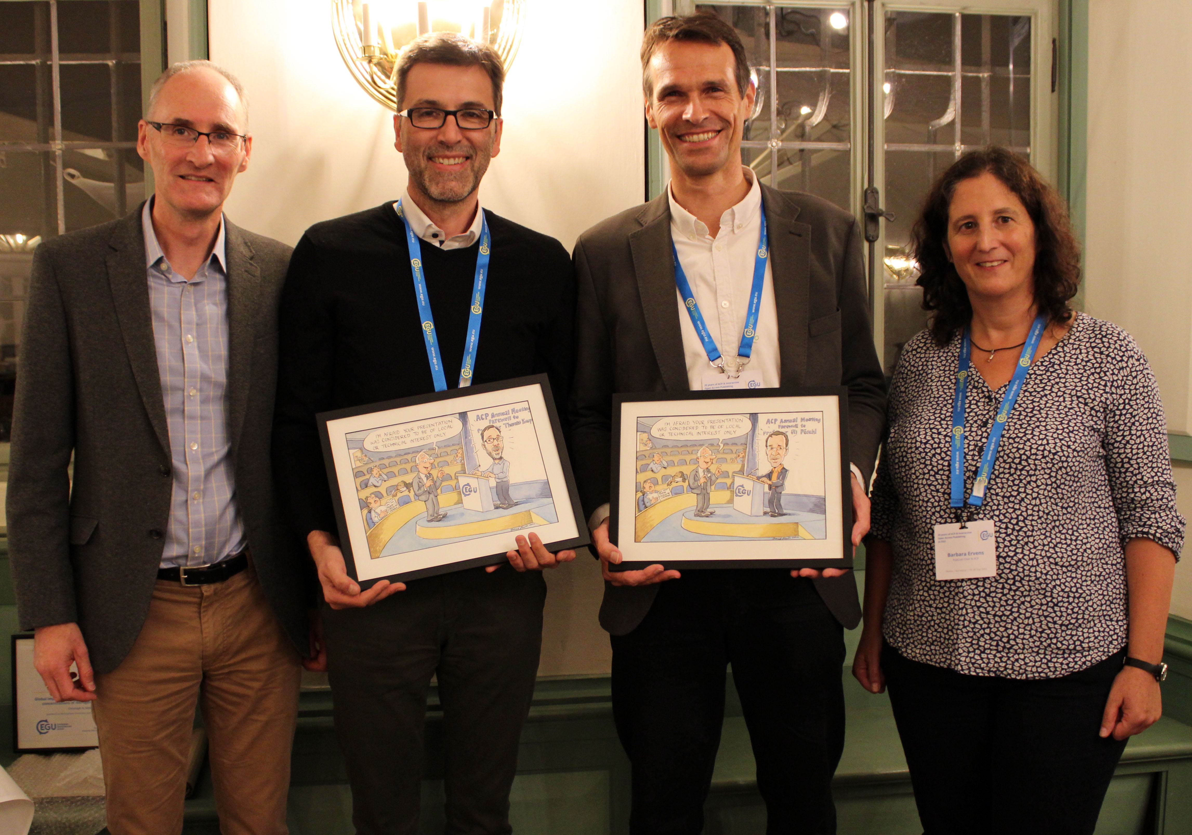 After more than 20 years of service, Ulrich Pöschl and Thomas Koop officially stepped down as ACP Executive Editors. In the years 2000/2001 they created the journal together with Ken Carslaw and Rolf Sander, then all affiliates or alumni of the Max Planck Institute, and Bill Sturges from the University of East Anglia, UK. Barbara Ervens (CNRS & University of Clermont-Ferrand, France) and Ken Carslaw (University of Leeds, UK) will continue as Co-Chief Executive Editors.