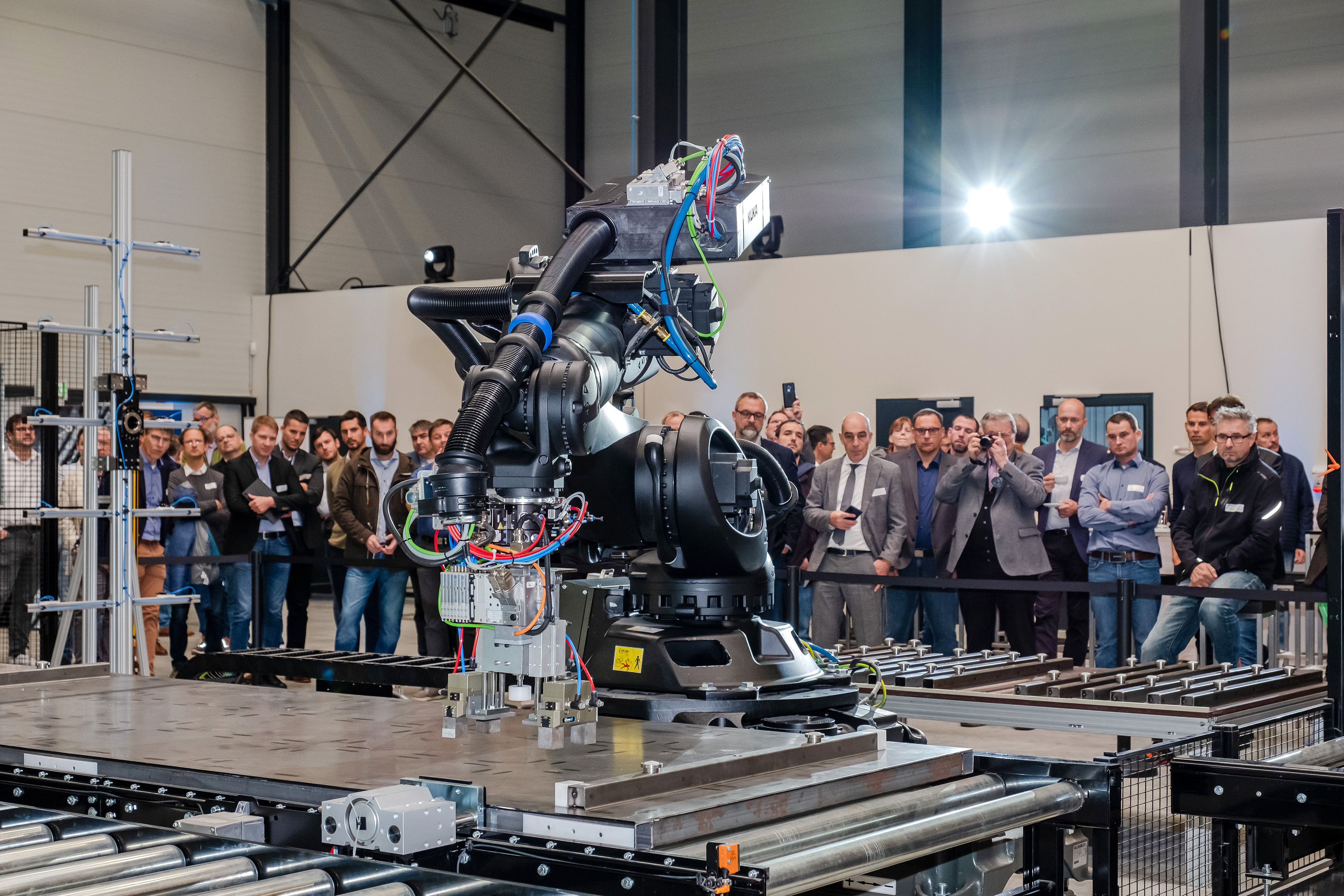 Drei Industrieroboter und 64 Meter an Rolltischen sorgen im Carbonbetontechnikum dafür, dass die Fertigung von bis zu 3,125 Meter breiten und 1,25 langen Bauteilen automatisch abläuft. Die fertigen Bauteile können an einem speziell entwickelten Kipptisch per Kran entnommen werden. Anfang 2023 sollen die derzeit noch im Aufbau befindlichen Bereiche Betonage und Qualitätsprüfung in Betrieb gehen.