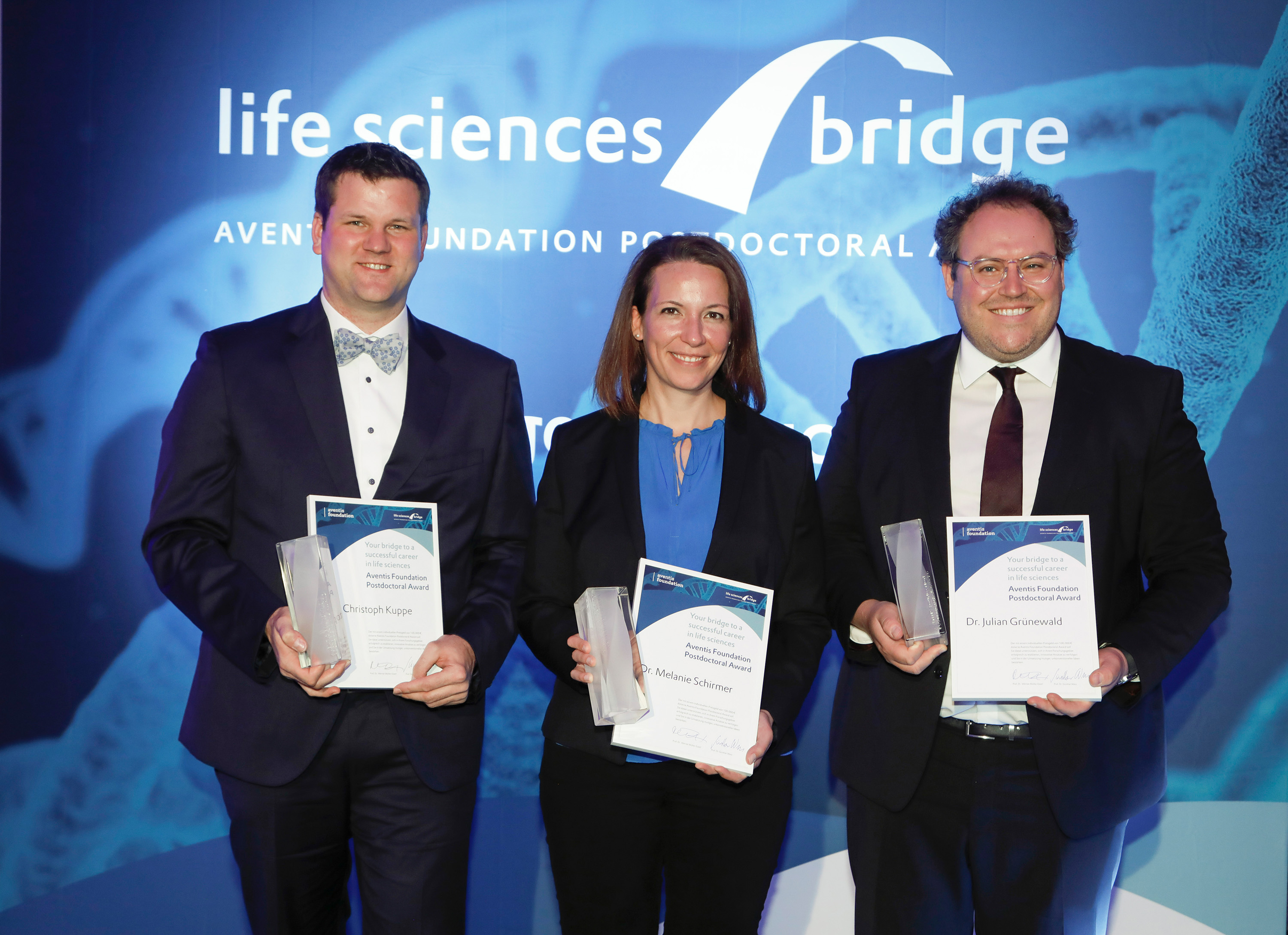 „Die drei Preisträger haben Herausragendes geleistet und lassen für die Zukunft viel erwarten“, sagte Prof. Dr. Günther Wess, der Kuratoriumsvorsitzende der Aventis Foundation. „Der Life Sciences Bridge Award schenkt ihnen mehr Unabhängigkeit, um ihre Forschungsideen umzusetzen. Wir wollen sie mit klarer Perspektive in der Wissenschaft halten.“