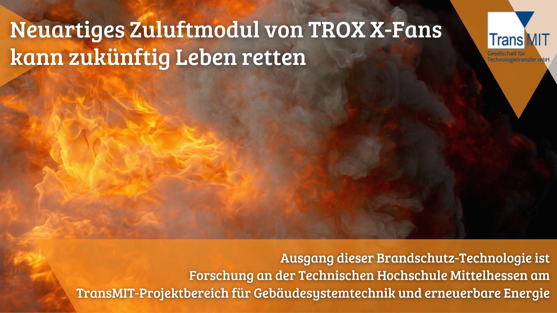 Rauchgase stellen die größte Gefahr für Personen bei Bränden in Gebäuden dar. Dementsprechend besteht eines der wichtigsten Ziele des vorbeugenden Brandschutzes darin, den Rauch aus dem Gebäude abzuführen und damit die erforderliche Rauchfreihaltung sicher zu stellen. Vor diesem Hintergrund haben Gießener Forscher um Prof. Thomas Winkler an der Technischen Hochschule Mittelhessen (THM) ein neuartiges Zuluftmodul zur Optimierung der Nachströmflächen von Entrauchungsanlagen entwickelt. Die Lizenz zur Herstellung, Benutzung und zum Vertrieb des Moduls wurde nun von der THM und dem TransMIT-Projektbereich für Gebäudesystemtechnik und erneuerbare Energie an die TROXX-FANS GmbH mit Sitz in Bad Hersfeld vergeben. TROX X-FANS ist Hersteller energieeffizienter Lüftungs- und Entrauchungsventilatoren für die technische Gebäudeausrüstung und als Komplettanbieter auf Sicherheitssysteme für Entrauchung spezialisiert. Die Lizenz erstreckt sich auf den gesamten Anwendungsbereich der Erfindung und ist zunächst bis zum Jahr 2027 befristet.