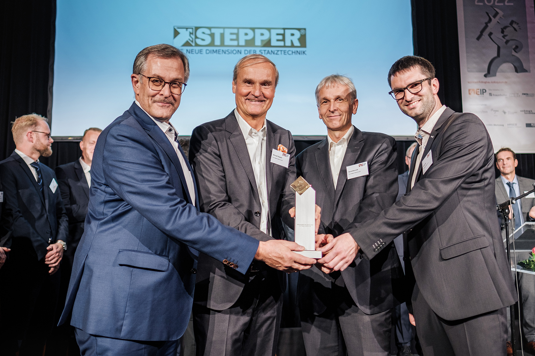Schon im Jahr 2019 überzeugte Fritz Stepper die Jury mit exzellenten Kennzahlen und Technologieführerschaft bei hochpräzisen Folgeverbundwerkzeugen. Nun konnte das Werkzeugbau-Unternehmen aus Pforzheim die Wettbewerbsjury erneut begeistern: Fritz Stepper setzte sich unter 262 Unternehmen durch, aus denen in vier Kategorien insgesamt elf Finalisten hervorgingen. Am 26. Oktober nahm Michael Stepper, Geschäftsführer und Inhaber der Fritz Stepper GmbH & Co. KG, während einer feierlichen Preisverleihung im Aachener Rathaus vor rund 300 Gästen den begehrten Preis stellvertretend für seine Mitarbeitenden entgegen. Die Laudatio auf den Gesamtsieger hielt traditionsgemäß der Vorjahressieger – in diesem Jahr Steffen Drabek, Director Electrified Powertrain Technology der ZF Friedrichshafen AG aus Schweinfurt.