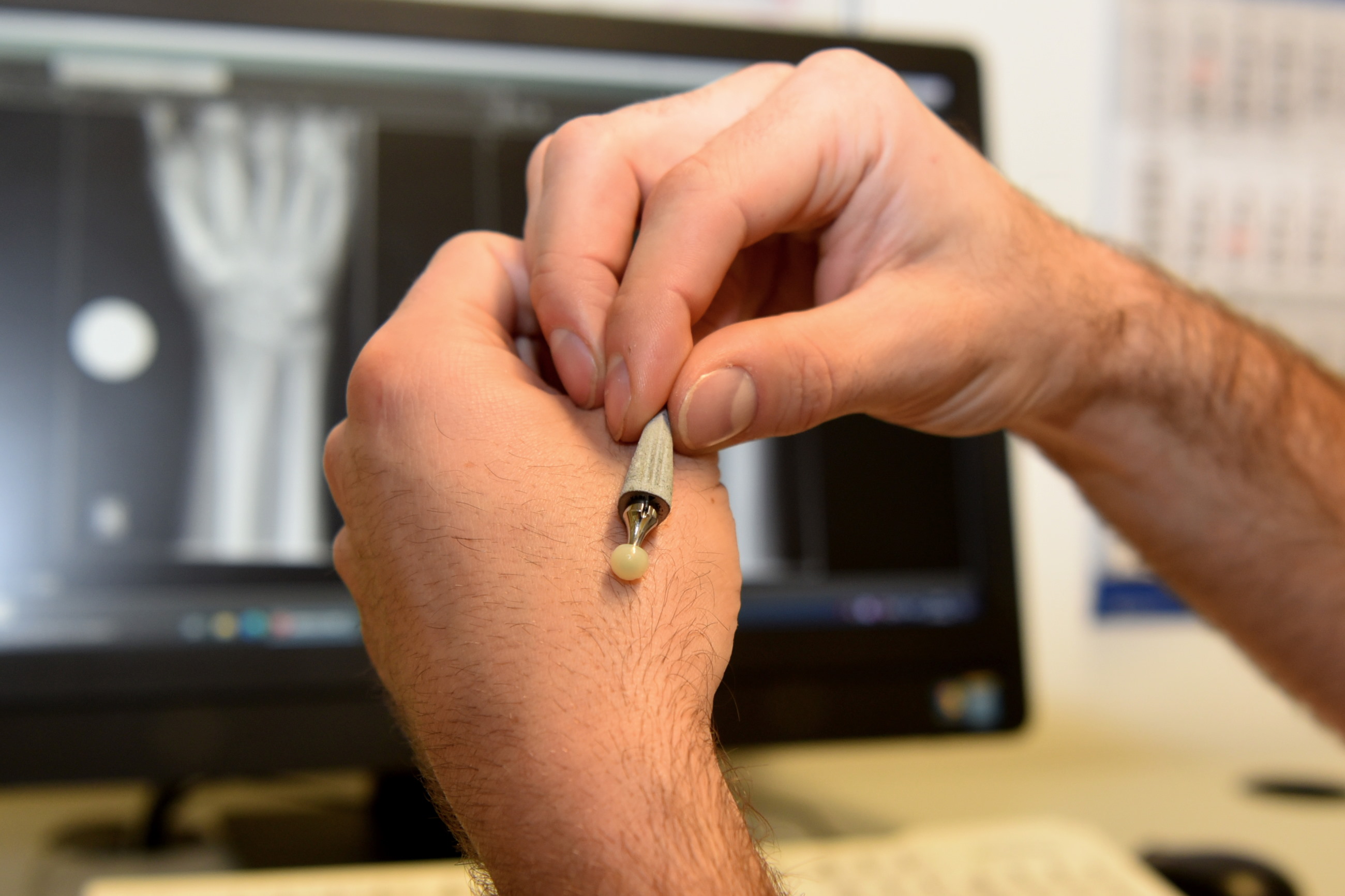 Wenn konservative Methoden nicht zum Ziel führen, entfernen Handchirurgen in der Regel das sogenannte große Vieleckbein, also einen Handwurzelknochen, ohne weitere Maßnahmen durchzuführen. Im Genesungsverlauf entsteht in dieser Lücke Narbengewebe, das später die Funktion eines künstlichen Gelenks übernehmen kann – im besten Fall führt dies zu deutlich oder vollständig reduzierten Schmerzen, wenn der betroffene Daumen bewegt wird. Ein Problem dieser Therapie ist jedoch die lange Ruhigstellung sowie eine häufig langwierige Rehabilitation mit meist bleibendem Kraftverlust. „Im französischsprachigem Raum werden daher bereits seit einigen Jahren erfolgreich Kunstgelenke implantiert“, so Harenberg. Neu ist dieses Verfahren nicht: zur Anwendung kommt es bereits seit 1973. „Die alten Prothesen hatten aber eine hohe Komplikationsrate“, so der Experte.