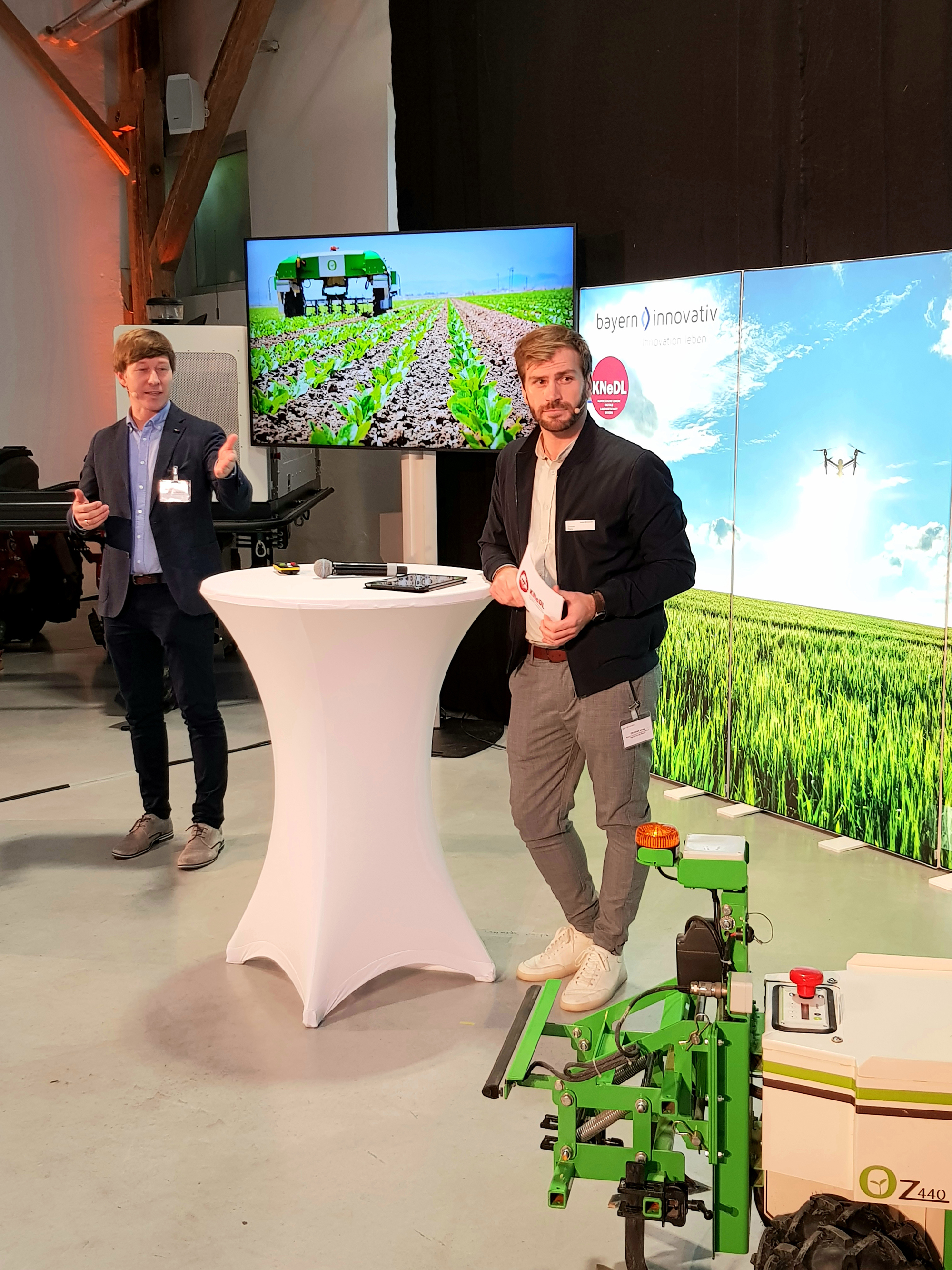 Ruhstorf an der Rott, 28.10.2022. Digitale Helfer werden in Zukunft einen wichtigen Beitrag für eine effiziente und nachhaltige Landwirtschaft leisten. Dieses Fazit der Veranstaltung „Smarte Helfer auf Bayerns Feldern“ kam nicht überraschend. Das bei Bayern Innovativ angesiedelte Kompetenz-Netzwerk Digitale Landwirtschaft (KNeDL) hatte zusammen mit der Bayerischen Landesanstalt für Landwirtschaft (LfL) in den Siemens Techno Park eingeladen, um dort die Chancen und Herausforderungen der Feldrobotik, den Einsatz von Drohnen sowie die Bedeutung von Cybersecurity in der Landwirtschaft vorzustellen.
