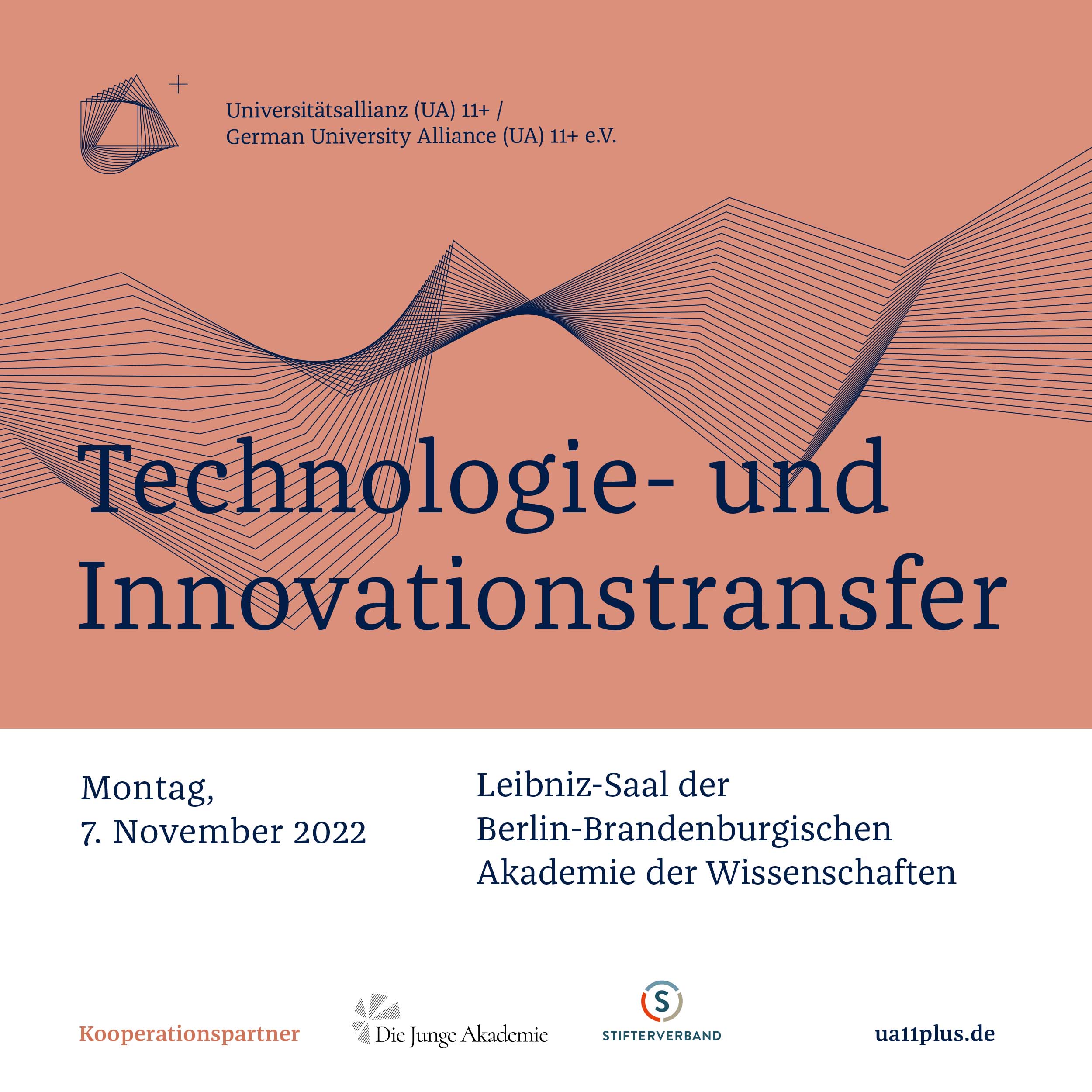 Die Universitätsallianz (UA) 11+ veranstaltet am Montag, 7. November 2022 ihre 1. Transferveranstaltung in der Berlin-Brandenburgischen Akademie der Wissenschaften in Berlin. Die Veranstaltung wird in Kooperation mit der Jungen Akademie und dem Stifterverband durchgeführt. Die Tagung ist der Auftakt einer dreiteiligen Transferveranstaltungsreihe.