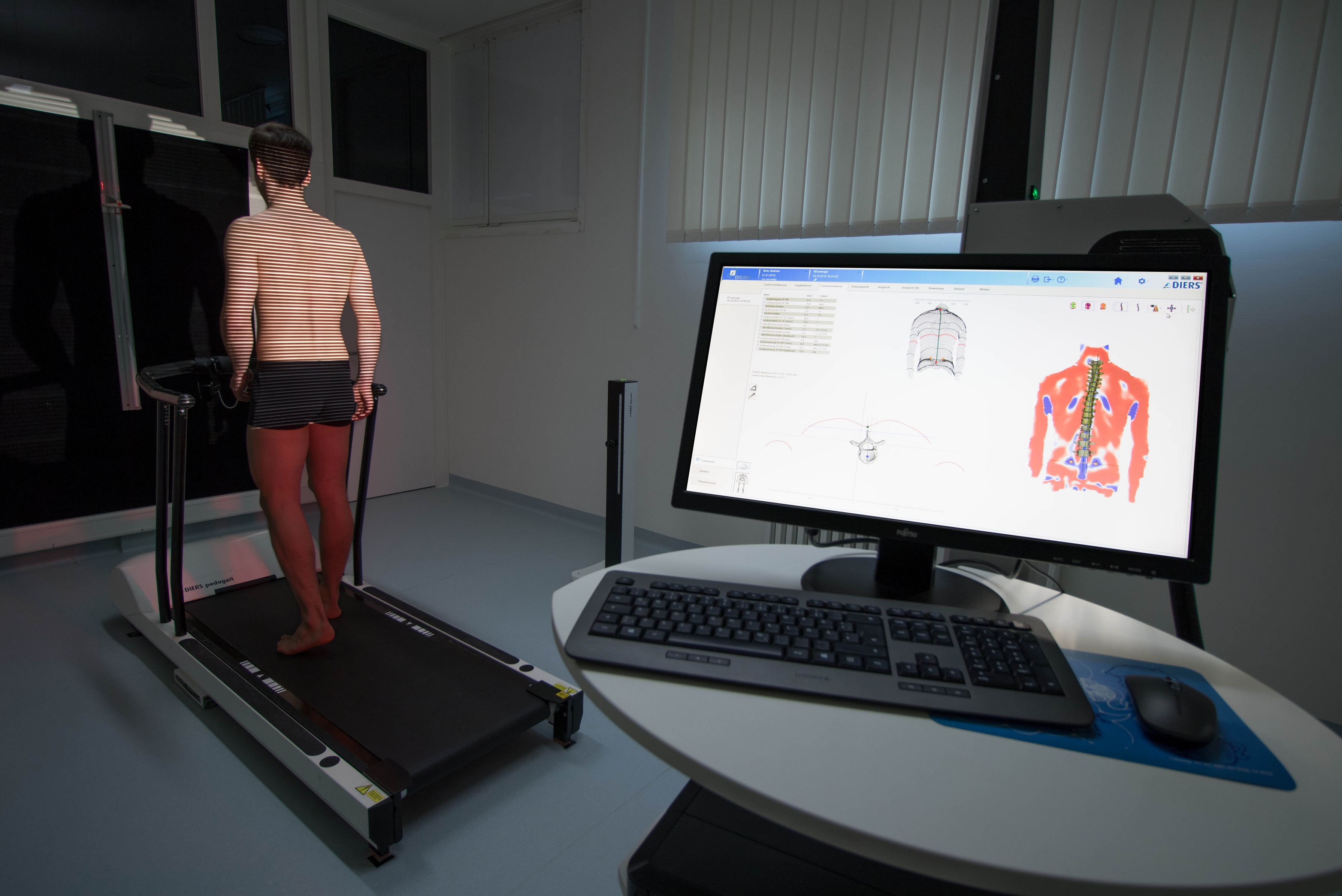 Das interdisziplinäre Team setzt dabei auf eine in der Praxis bereits gut erprobte und verbreitete Diagnosetechnik. „Wir scannen den Rücken mit einem Projektor und einer Kameraeinheit“, sagt Dindorf. Dabei wird ein Lichtgitter auf den Rücken projiziert. Mittels der sogenannten Rasterstereographie kann so ein individuelles Modell der Wirbelsäule berechnet werden. Neu bei der Methode ist nun der Einsatz von Verfahren der KI und des maschinellen Lernens. „Unser System lernt mit Hilfe der gewonnenen Daten dazu“, erläutert Dindorf. „Je mehr Wirbelsäulen analysiert werden, desto besser wird das System und somit unser Verständnis der Wirbelsäule.“