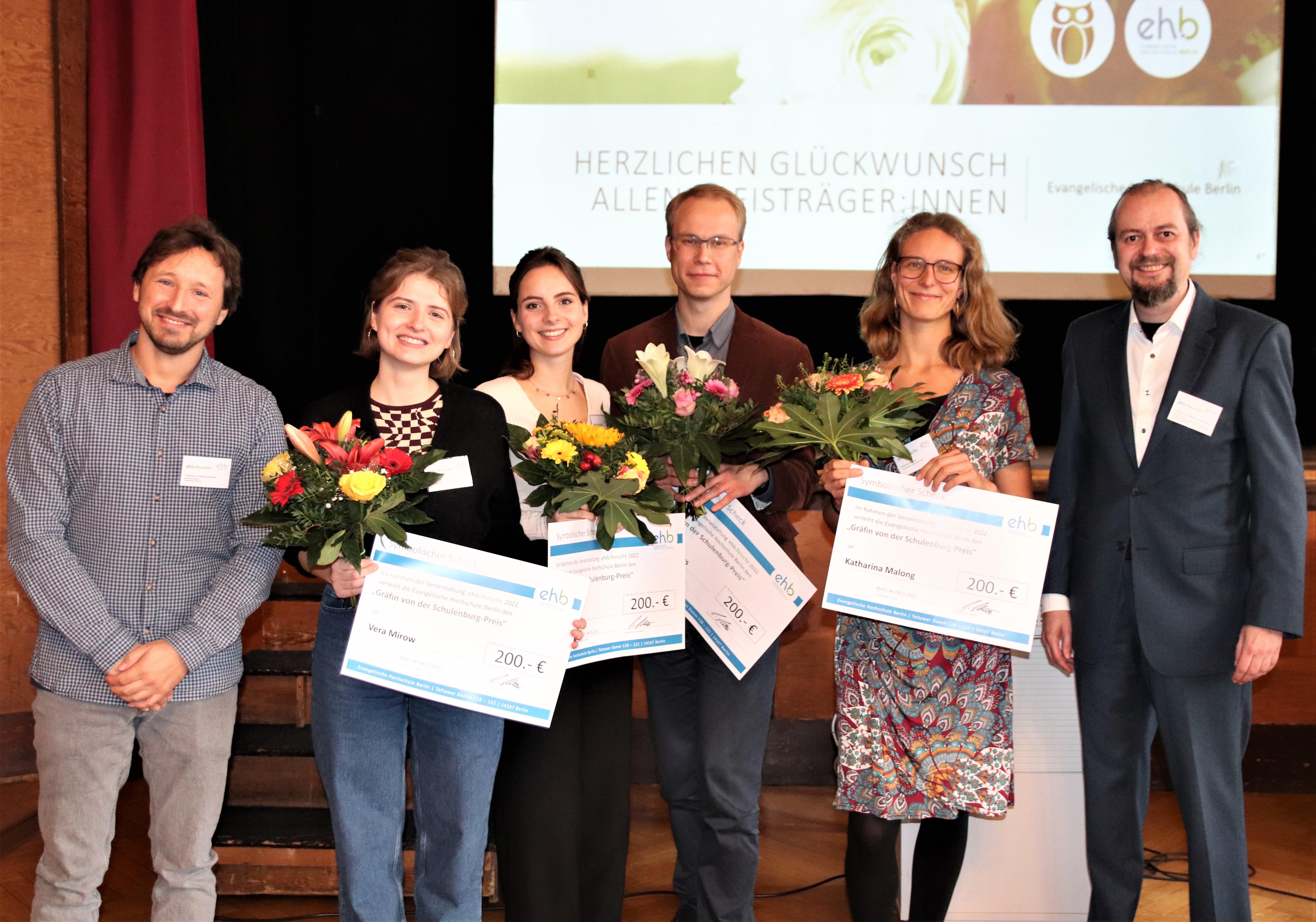 Seit 2007 gibt es ehb.forscht und den Gräfin von der Schulenburg-Preis, der traditionell im Wintersemester für die beste wissenschaftliche Arbeit eines Jahrgangs vergeben wird. Externe Jurymitglieder aus den jeweiligen Fachgebieten entscheiden in einer geheimen Abstimmung über die Prämierung. Der 1. Preis ist mit 800 Euro dotiert, alle weiteren Nominierten erhalten jeweils 200 Euro. Die prämierte Abschlussarbeit wird im Nachgang über den kirchlichen Server KiDox auch einem breiten Publikum zugänglich gemacht.