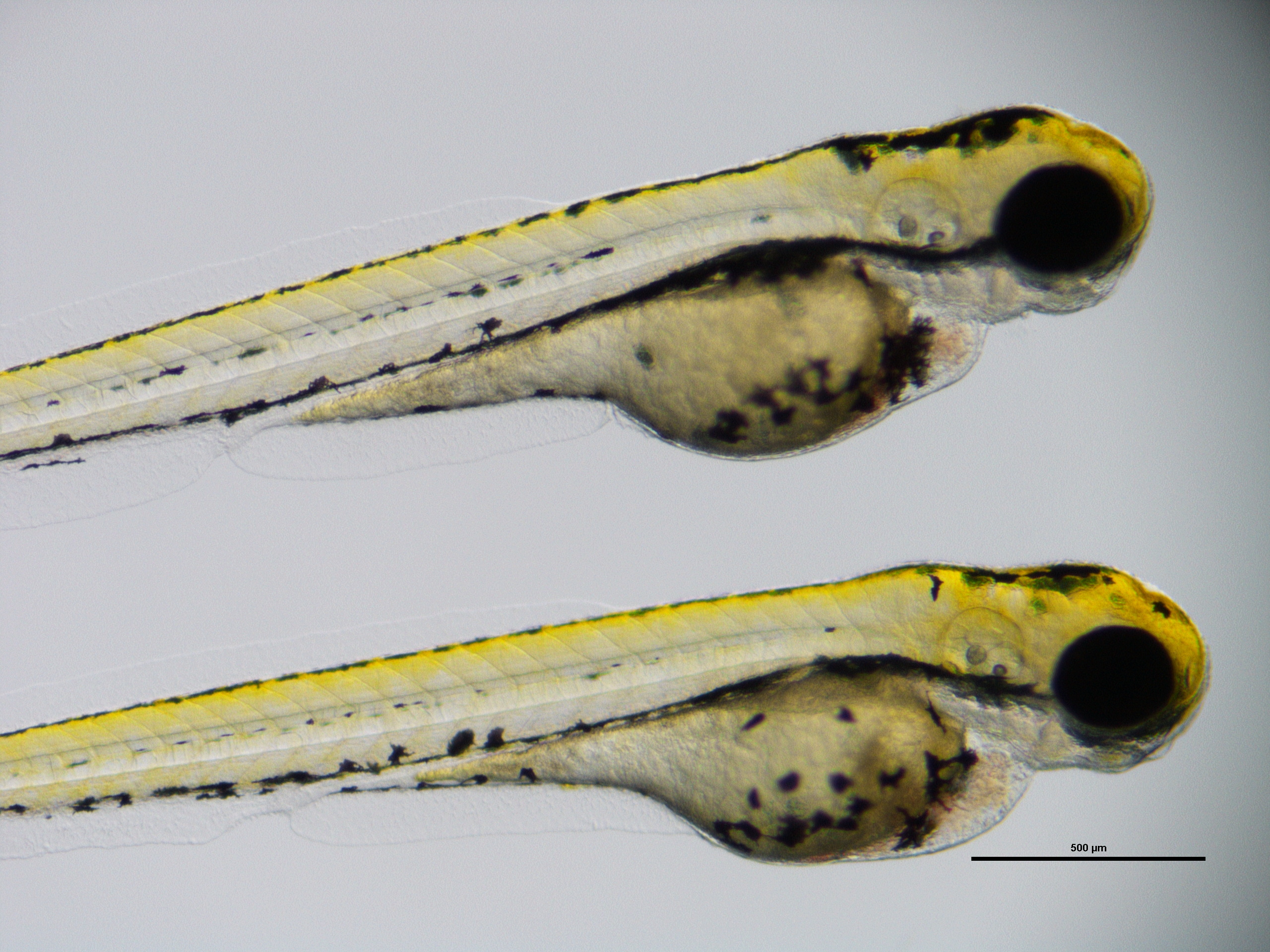 Damit war aber noch nicht zwingend geklärt, ob tatsächlich die SHROOM4-Varianten für die Fehlbildungen verantwortlich waren. Es gibt jedoch ein Tier, das über eine ganz ähnliche Erbanlage verfügt: der Zebrafisch. Er dient in vielen genetischen Studien heute als Modellorganismus – nicht nur, weil er sich einfach artgerecht halten und schnell vermehren lässt: Die Haut seiner Larven ist nahezu durchsichtig. Man kann also unter dem Lichtmikroskop leicht erkennen, wie sich die Tiere entwickeln. „Wir haben hier am Uniklinikum den Vorteil, dass die Arbeitsgruppe um Prof. Dr. Benjamin Odermatt vom Institut für Neuroanatomie sehr viel mit Zebrafischen arbeitet“, betont Dr. Caroline Kolvenbach, die ebenfalls an der Untersuchung von SHROOM4 beteiligt war. „Diese Expertise kam uns in unserer Studie zugute.“