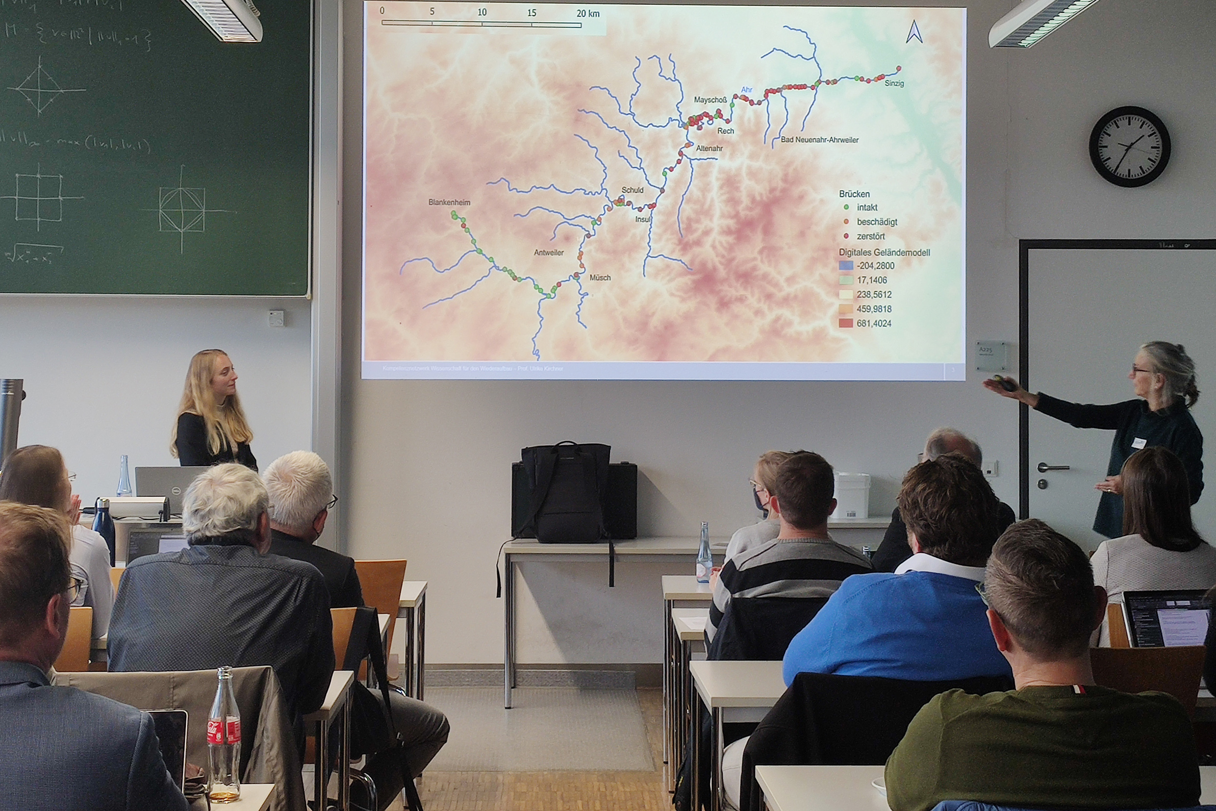 Im Mai hatte das an der Hochschule Koblenz angesiedelte Kompetenznetzwerk Wissenschaft für den Wiederaufbau einen ersten Brückenworkshop zum Thema „Neue Brücken für das Ahrtal“ durchgeführt, an dem am Hochschulstandort Remagen 65 Fachleute aus Wissenschaft, Behörden und Ingenieurbüros teilgenommen hatten. Nun folgte – wieder in Kooperation mit dem Projekt „Klima-Anpassung, Hochwasser und Resilienz“ (KAHR) des Bundesministeriums für Bildung und Forschung (BMBF) – am RheinAhrCampus ein zweiter Brückenworkshop zum Thema „Dialog zum Umgang mit den teilzerstörten Brücken“.