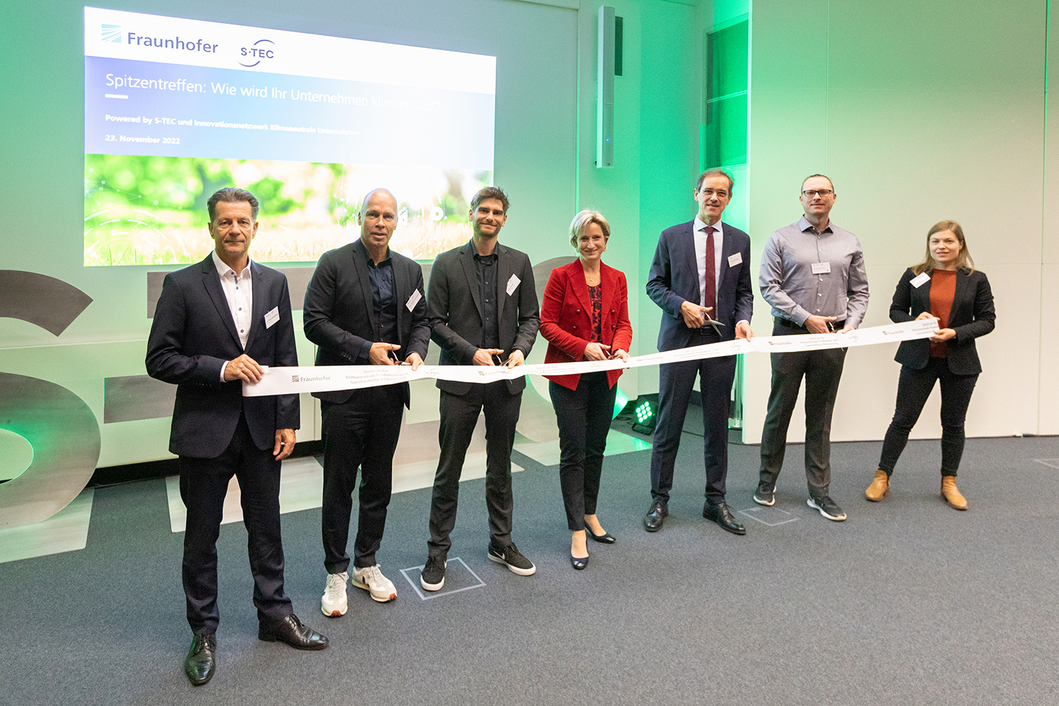 Am 23. November 2022 öffneten sich erstmals die Pforten des neuen »Zentrums für Klimaneutrale Produktion und Ganzheitliche Bilanzierung«, kurz ZKP, auf dem Stuttgarter Technologie- und Innovationscampus S-TEC. Auf dem S-TEC Spitzentreffen eröffnete Dr. Nicole Hoffmeister-Kraut, Ministerin für Wirtschaft, Arbeit und Tourismus in Baden-Württemberg, das Zentrum gemeinsam mit den Instituts- und Zentrumsleitungen der beteiligten Fraunhofer-Institute für Bauphysik IBP sowie für Produktionstechnik und Automatisierung IPA sowie der Universität Stuttgart.