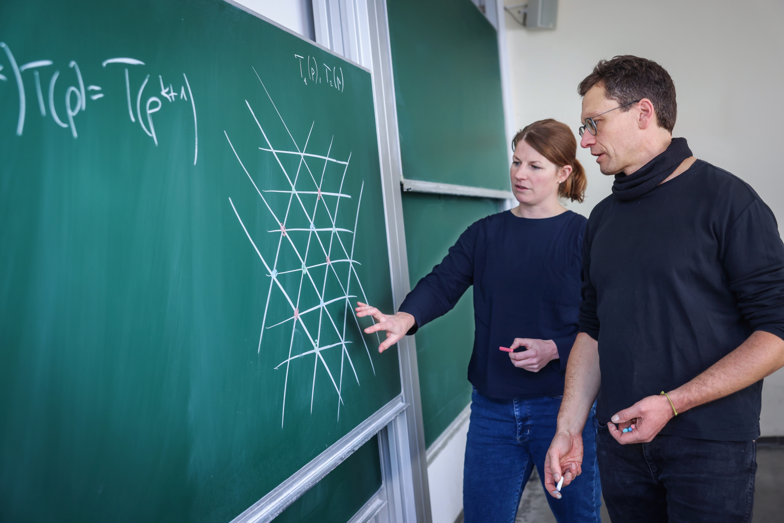 Als Gastwissenschaftlerin forscht die ukrainische Mathematikerin Professorin Dr. Maryna Viazovska von der Schweizer École polytechnique fédérale de Lausanne (EPFL) in dem Transregio. Sie ist bekannt für ihren bahnbrechenden Beitrag zur Theorie dichtester Kugelpackungen. Viazovska ist seit diesem Jahr Trägerin der Fields-Medaille, der höchsten wissenschaftlichen Auszeichnung in der Mathematik. Ebenfalls am Transregio beteiligt sein wird der australische Mathematiker Professor Dr. Amnon Neeman von der Australian National University. Er leistete Pionierarbeit bei der Entwicklung von triangulierten Kategorien. Beide Forschende werden als Mercator-Fellows von der DFG gefördert.