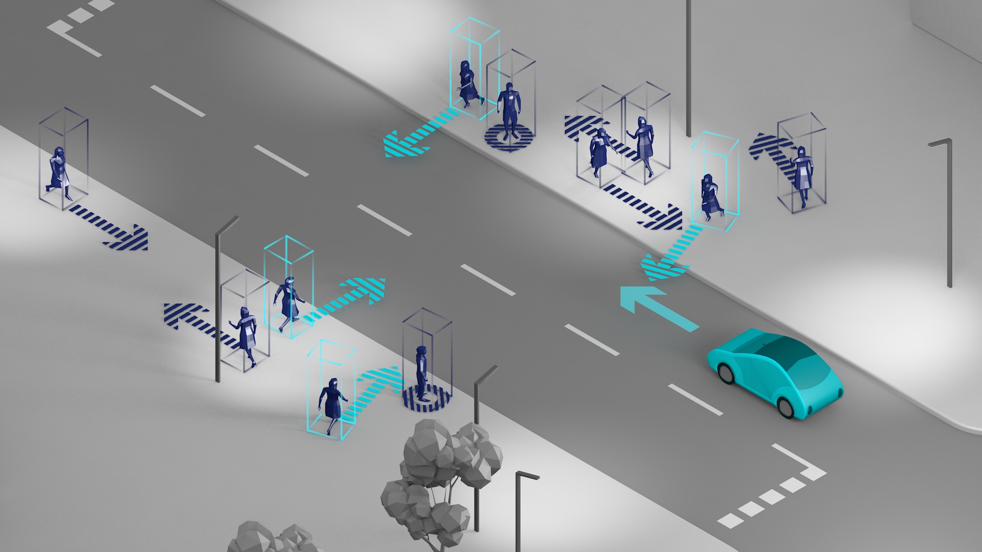 »Wir haben mittlerweile einen Forschungs-Prototypen umgesetzt, der abschätzt, ob ein Fußgänger die Straße überqueren möchte, seine Gesten analysiert und somit die Grundlage für die Interaktion schafft«, erklärt Martin. Das System bestehe aus einer Stereokamera, die räumlich »sehen« und somit die genaue Position von Passanten erfassen könne, und einem KI-Algorithmus, der die Positionen der Gliedmaßen erfasse und daraus Schlüsse ziehe. »Dieses System haben wir bei einer Projektpräsentation anlässlich der Halbzeit von INITIATIVE erfolgreich demonstriert«, so der IOSB-Forscher. »Nun geht es darum, die KI weiter zu trainieren und das System insgesamt zu verfeinern, damit es in allen denkbaren Situationen die Absichten der Fußgänger möglichst zutreffend erkennen kann.«