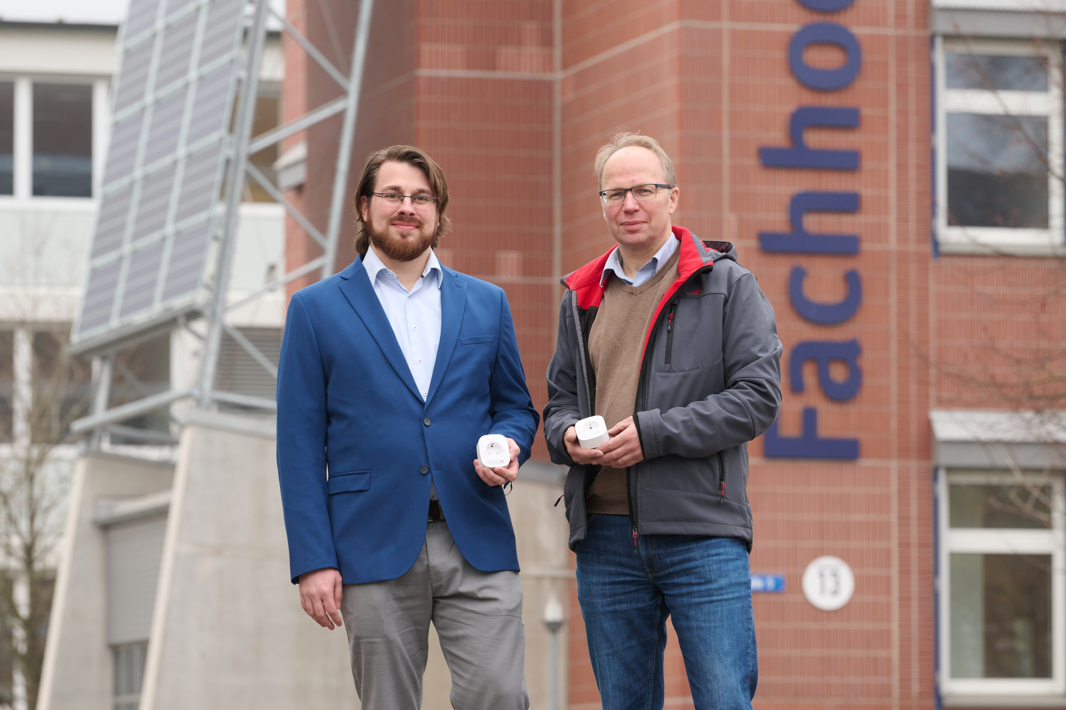 Der Bedarf an elektrischer Energie schwankt im Tagesverlauf erheblich-– genauso wie deren Erzeugung und Verfügbarkeit im Stromnetz. An sonnigen oder stürmischen Tagen produzieren z. B. Solar- und Windkraftanlagen oft mehr Strom, als gerade genutzt werden kann. Der meiste Solarstrom wird in der Mittagszeit erzeugt, in diesem Zeitfenster sind die meisten Haushalte selbst auf der Arbeit und können die großen Stromverbraucher nicht anschalten. Und genau hier setzt das Forschungsprojekt IntelliGrid an. Das deutsch-dänische Forschungsteam hat ein intelligentes System bestehend aus Smart-Stecker, App und Cloud-Server entwickelt, das Geräte in Privathaushalten automatisch einschaltet, wenn das Stromangebot besonders hoch ist. Die drei Großverbraucher Waschmaschine, Geschirrspüler und Trockner werden quasi als schaltbare Last genutzt, um Angebot und Nachfrage im Stromnetz auszugleichen. Wie das funktioniert, erklärt Prof. Dr. Ralf Patz: „Die Nutzerinnen und Nutzer bestimmen, zu welchem Gerät der Stecker gehört. In der dazugehörigen App legen sie fest, wann z. B. die Wäsche spätestens fertig sein soll. Die App kommuniziert über W-LAN mit unserem Server. Ist genügend Strom aus erneuerbaren Energien vorhanden, startet dieser aus der Ferne die Maschine.“