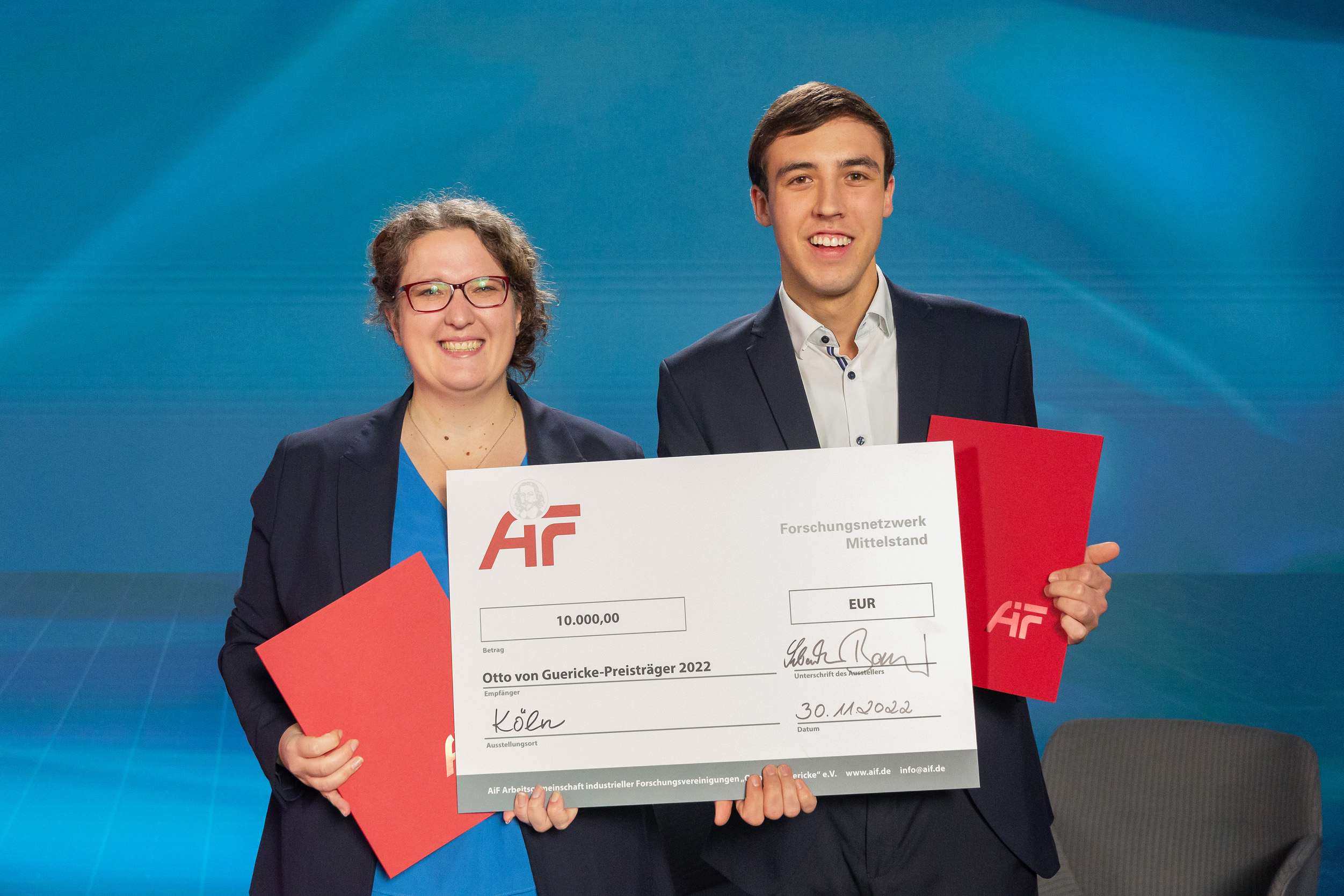 Zement, Wasser und Gesteinskörnung sind die Hauptbestandteile des wichtigsten Baustoffs der Welt: Beton. Das junge Forscherteam Anja Tusch und Jonas Lillig von der Technischen Universität Kaiserslautern wurde am 30. November 2022 mit dem Otto von Guericke-Preis ausgezeichnet. Die Ergebnisse ihres Forschungsprojektes mit dem Titel „Steigerung des Frischbetonrecyclings in der Transportbetonindustrie“ ermöglichen eine Ressourcenschonung durch kreislaufgerechte Verwendung von Restbeton. Das Forschungs- und Transfernetzwerk AiF Arbeitsgemeinschaft industrieller Forschungsvereinigungen „Otto von Guericke“ e.V. vergibt den mit 10.000 Euro dotierten Preis seit 1997 an Wissenschaftlerinnen und Wissenschaftler für besondere Innovationsleistungen auf dem Gebiet der vorwettbewerblichen Industriellen Gemeinschaftsforschung (IGF), die vom Bundeswirtschaftsministerium mit öffentlichen Mitteln gefördert wird.