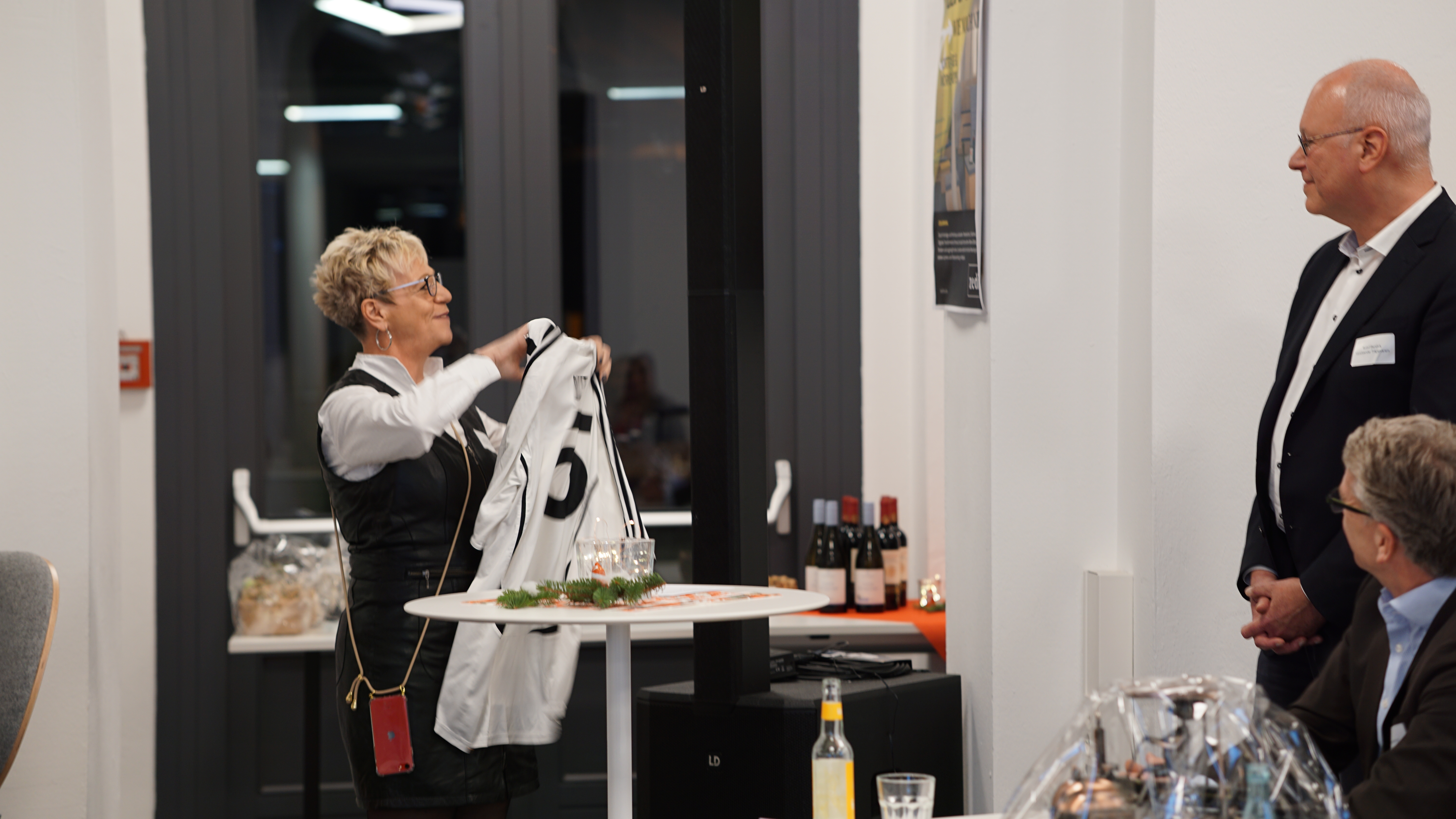 Abschließend hielt Marion Linnemann, Assistentin des Präsidiums der HSW und langjährige Wegbegleiterin Bandicks, an das Motto Fußball angelehnt eine bewegende Abschiedsrede. In dieser würdigte sie Bandick als einen Menschen, der sich ab dem Jahr 2005 zunächst als stellvertretender Vorsitzender und ab 2007 dann als Vorsitzender des Trägervereins „stets gut vorbereitet“ zeigte und mit „Spielwitz und Hartnäckigkeit“ über 17 Jahre hinweg „immer am Ball“ blieb und „das Spiel der Mannschaft HSW erfolgreich mitbestimmte“. Zu einem seiner und aller Beteiligten mit größten Erfolgen zählten dabei insbesondere die Hochschulgründung im Jahr 2010 sowie die erfolgreiche Reakkreditierung der Hochschule durch den Wissenschaftsrat im vergangenen Jahr auf ganze weitere zehn Jahre. „Heute verlässt Rudi Bandick, der strategische Denker, das Spielfeld und überlässt anderen den Platz. Als Legende wird er immer einen Platz als Ehrenspieler in der Geschichte unserer Institution haben“, so Linnemann, die mit diesen Worten zugleich zum gemeinsamen come together mit passender Fußballübertragung überleitete.