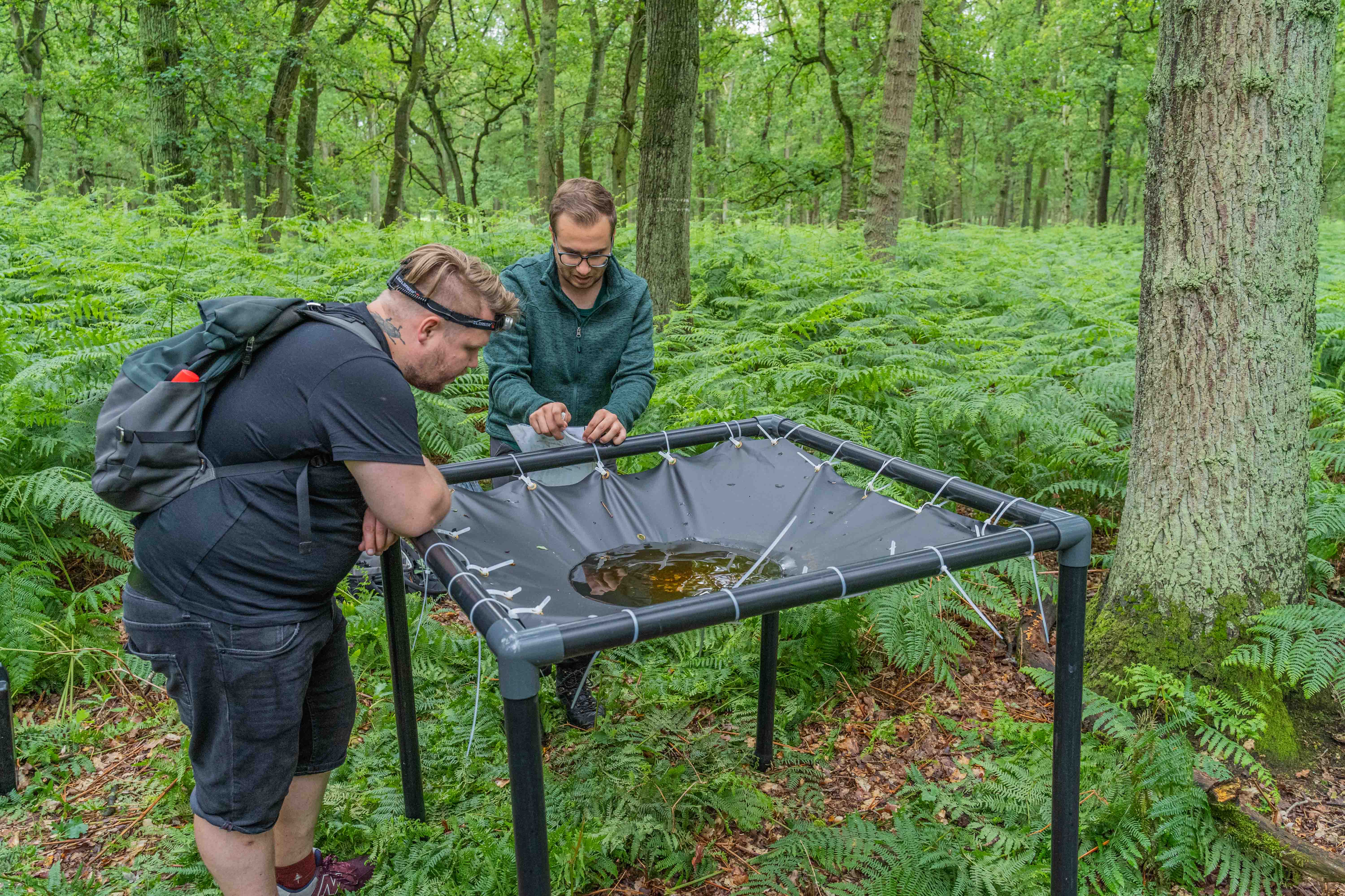 Tree-climbing, cranes, chemical knockdown – collecting samples from the canopies used to be very time-consuming. Scientists from the UDE's working group "Aquatic Ecosystem Research" led by Prof. Dr. Florian Leese now had a brilliant idea: Shortly before a forecast downpour, they placed four rain samplers beneath oaks, beeches, pines, and larches in the Diersfordter Wald and in the Großer Veen on the Lower Rhine region.