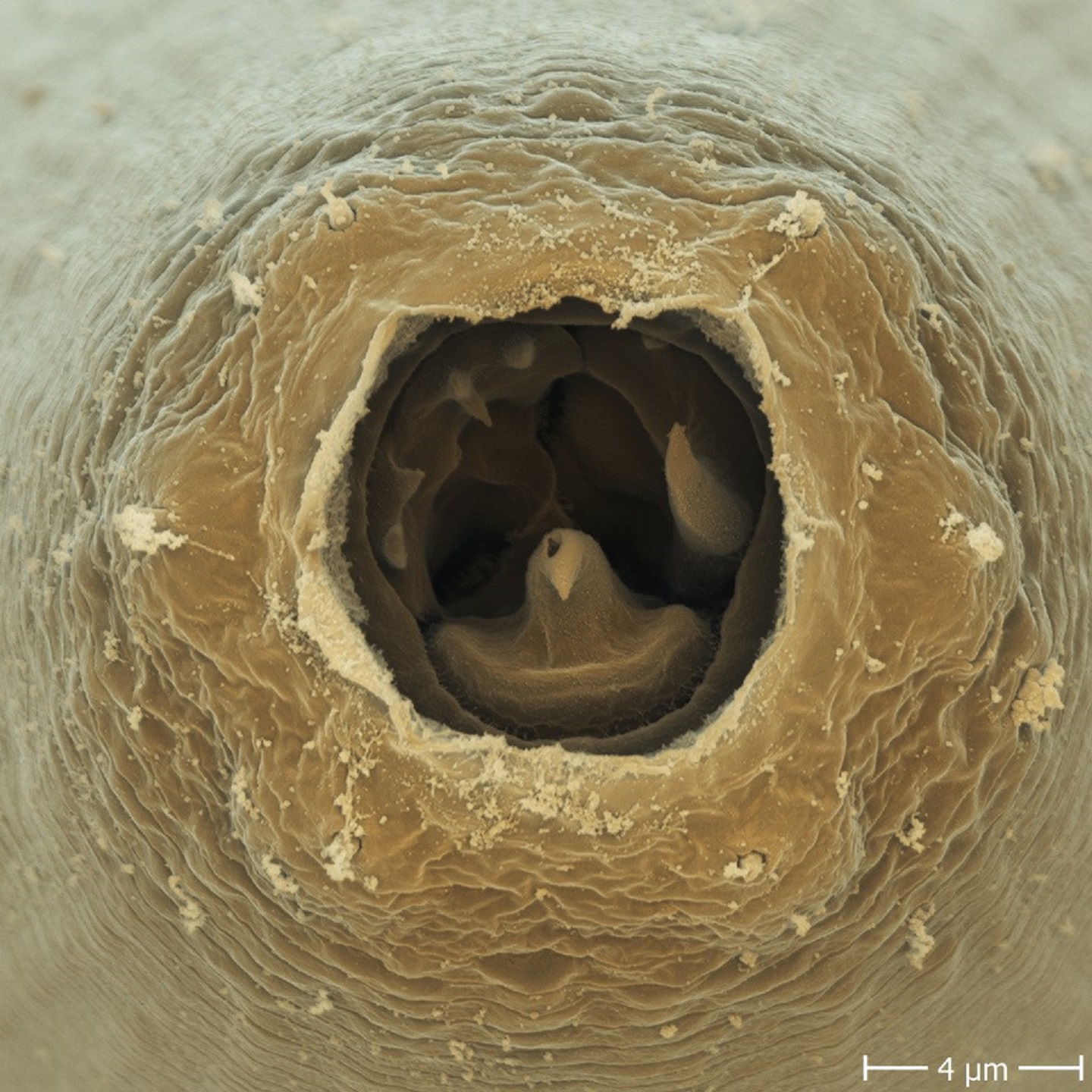 Einem Forschungsteam des Max-Planck-Instituts für Biologie Tübingen unter Leitung von Ralf Sommer gelang nun erstmals der Nachweis, dass die Zähne des Fadenwurms Pristionchus pacificus aus Chitin bestehen. Chitin ist sehr widerstandsfähig und dient in der Natur oft der Strukturbildung: In den Außenskeletten von Gliederfüßlern – etwa in den Panzern von Käfern und den Schalen von Krebsen – findet der Vielfachzucker Verwendung, aber auch in der Zellwand von Pilzen.