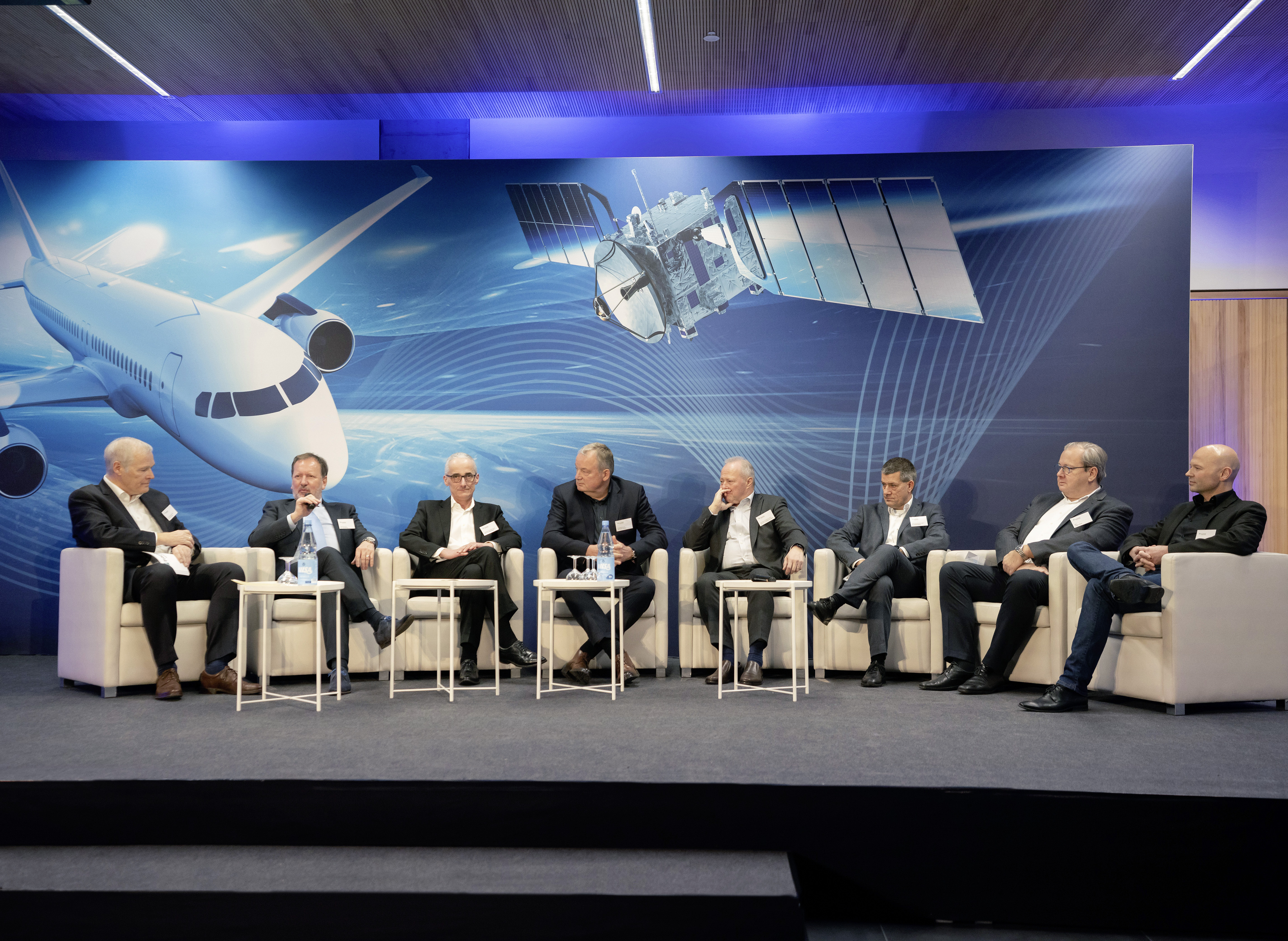 Die beiden Direktoren von Fraunhofer AVIATION & SPACE, Prof. Bernd Mayer und Prof. Michael Lauster, tauschten sich während der Podiumsdiskussion intensiv mit namhaften Vertretern der Branche aus: